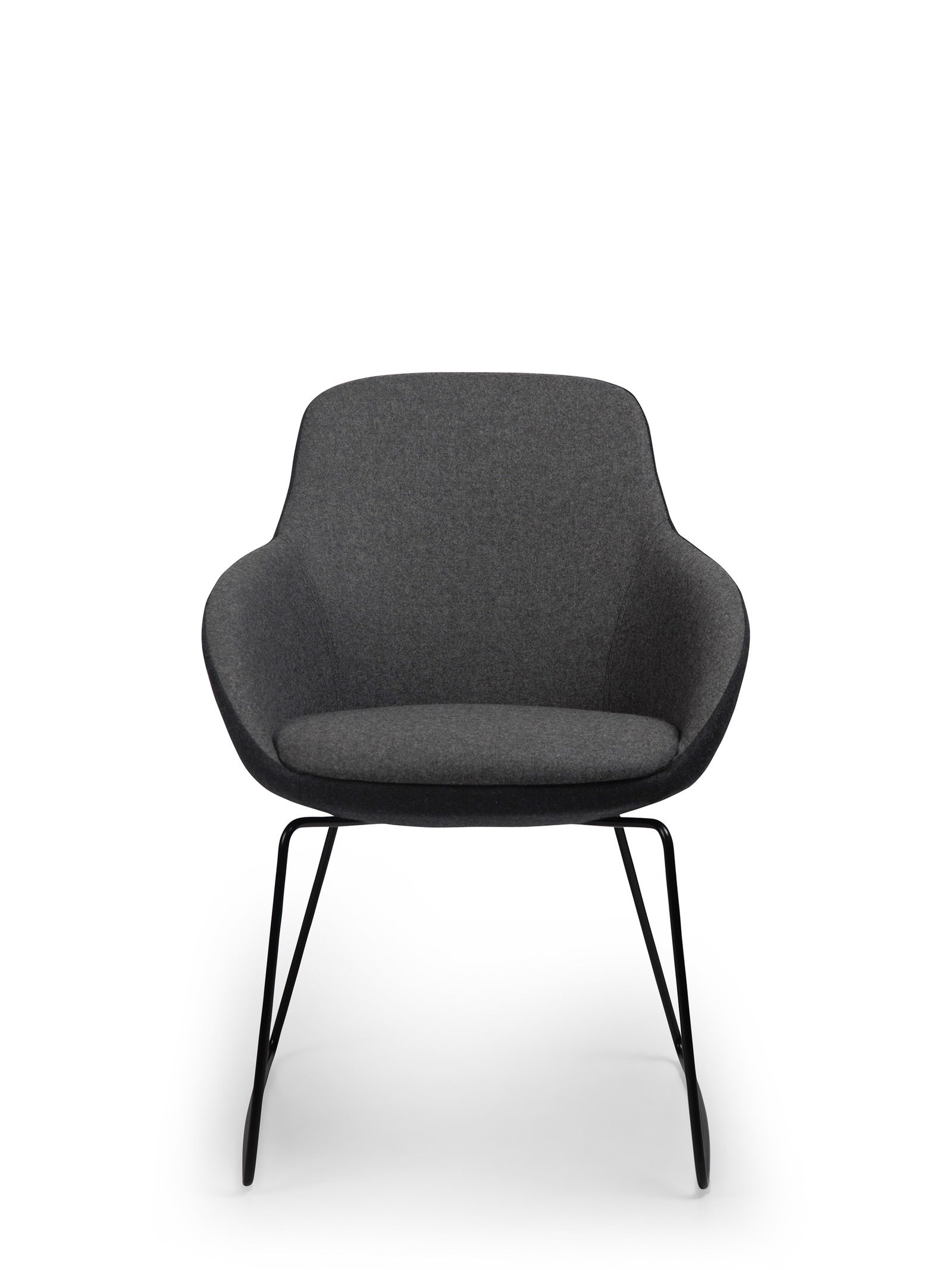 The Muse Armchair is available as a Sled, Timber 4-Leg, 4-Way Swivel (timber and metal), 5-Way Swivel on Castors or as a Lounge Chair.