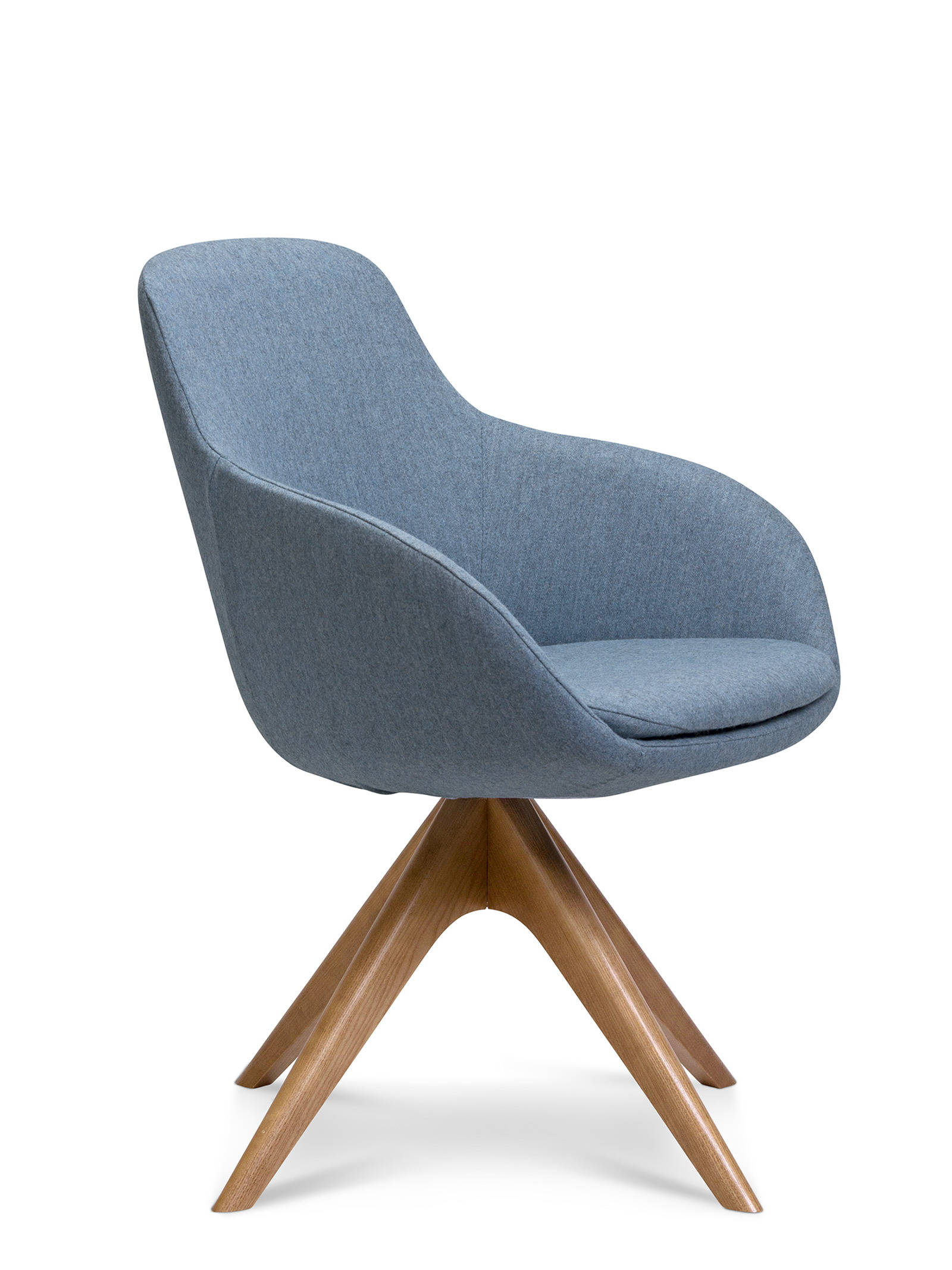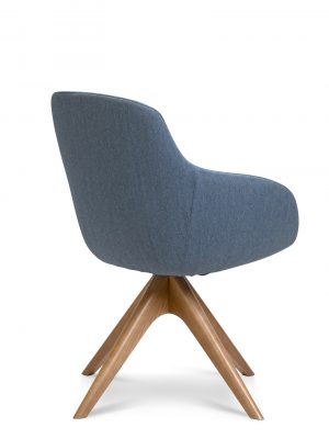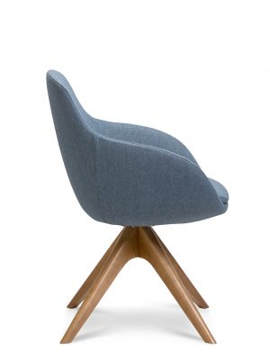 The Muse Armchair is available as a Sled, Timber 4-Leg, 4-Way Swivel (timber and metal), 5-Way Swivel on Castors or as a Lounge Chair.