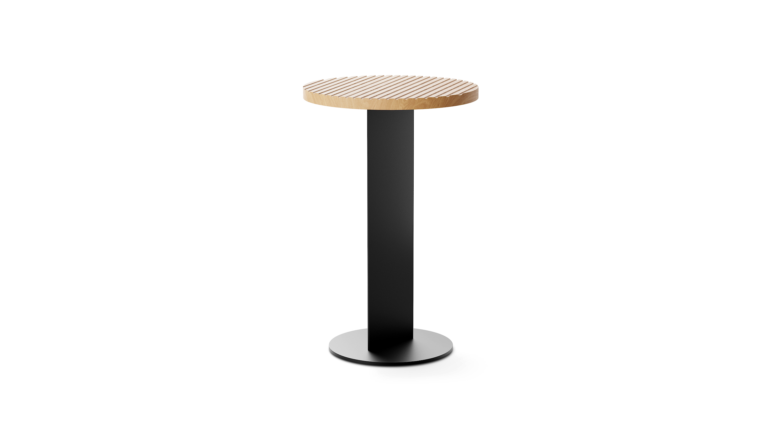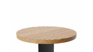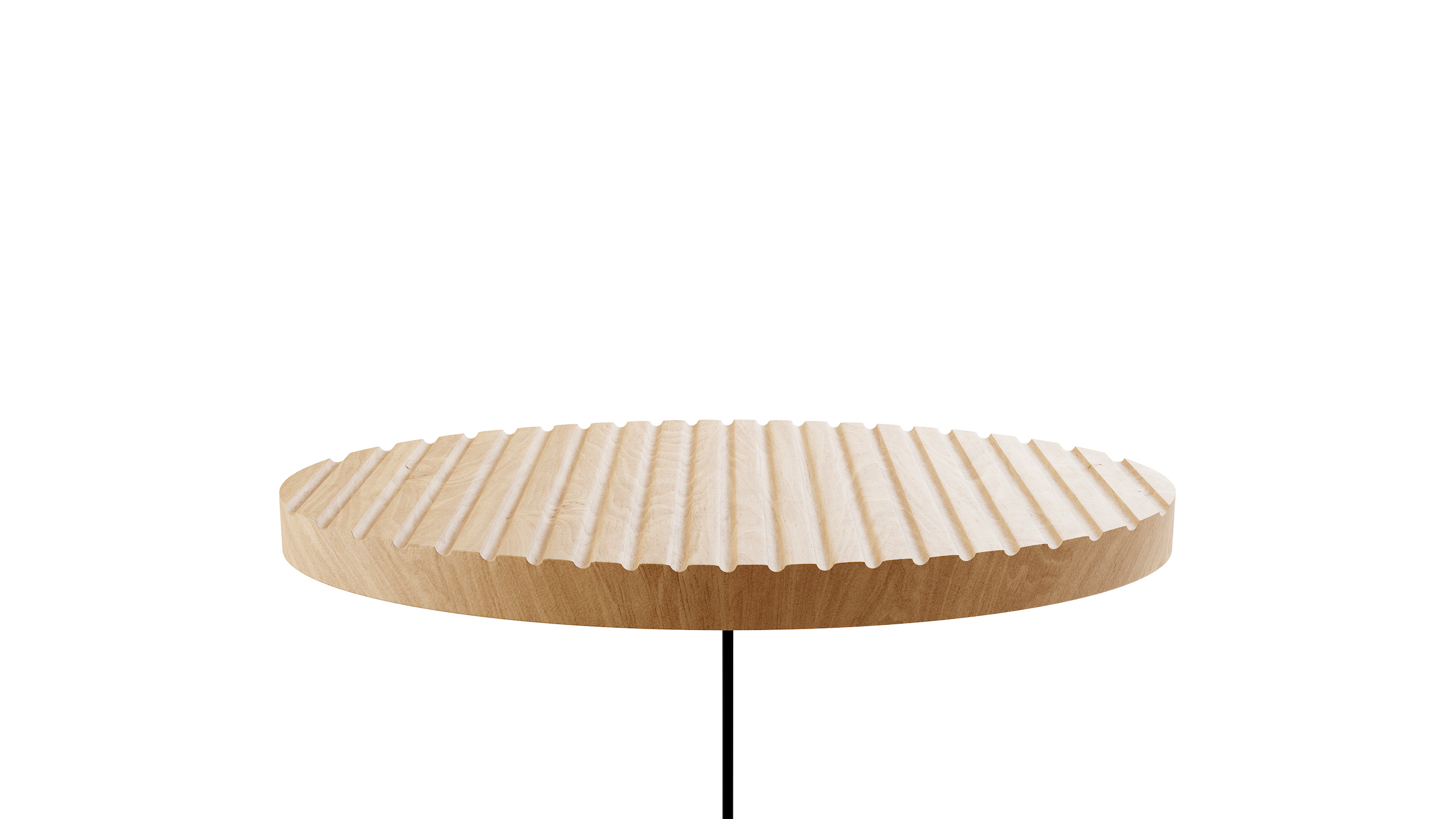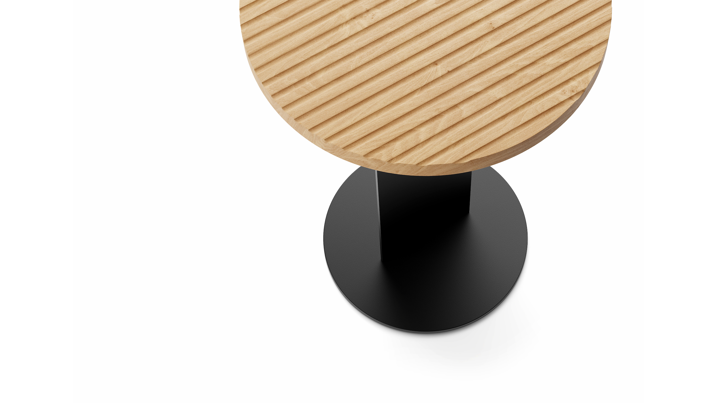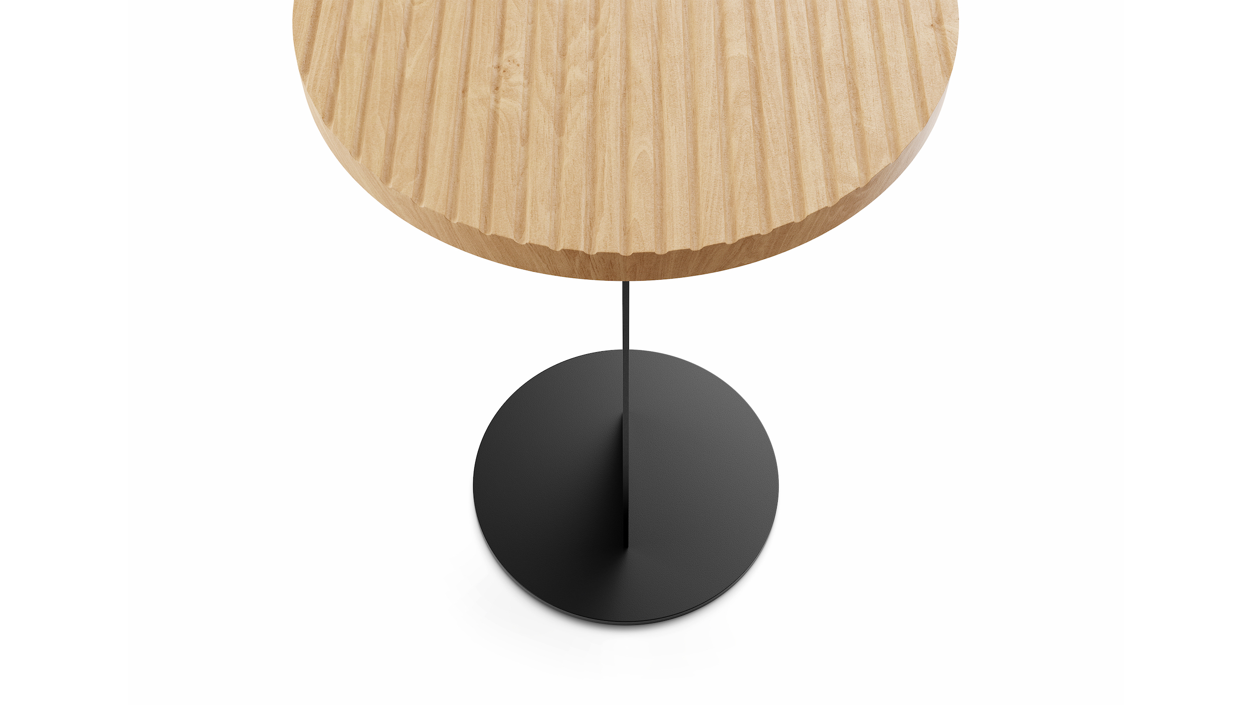The tables blend the undulating texture of linear waves with a perfect balance of warmth that hardwood timber imbues. Ripple tables pair the warmth of natural hardwood timber with a lightly textured enamelled aluminium blade stem, balanced seamlessly on a circular disc base.
