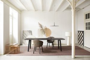 Essential Wood comprises of a solid wood tabletop on a plywood trestle. The frame can be swapped as needed. Essential Steel also features a solid wood tabletop, but this time its trestle is made from steel with a fine epoxy textured finish.
