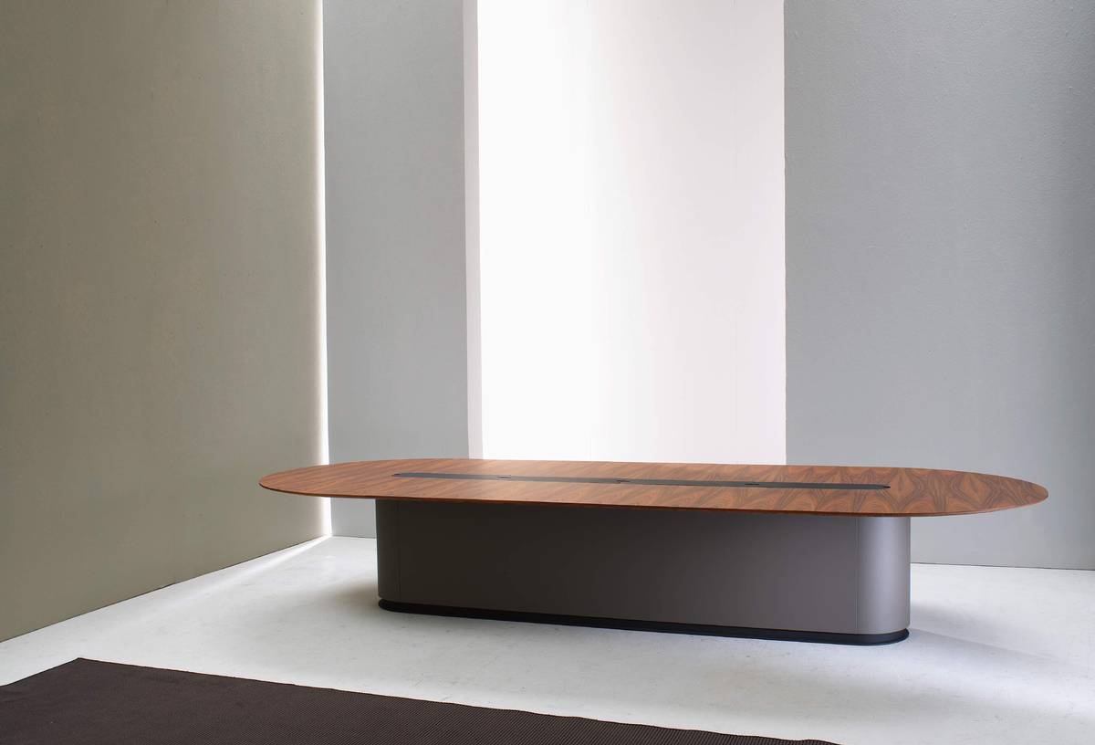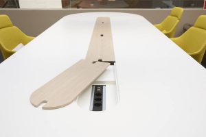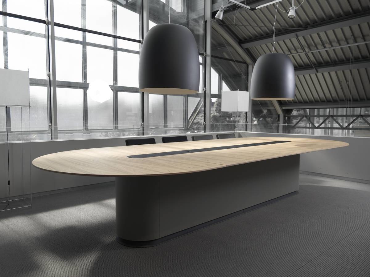 The table can be fitted with cable management features and (plug-in) accessories upon request and designed to accommodate informal meetings right through to formal meeting and conferencing requirements.