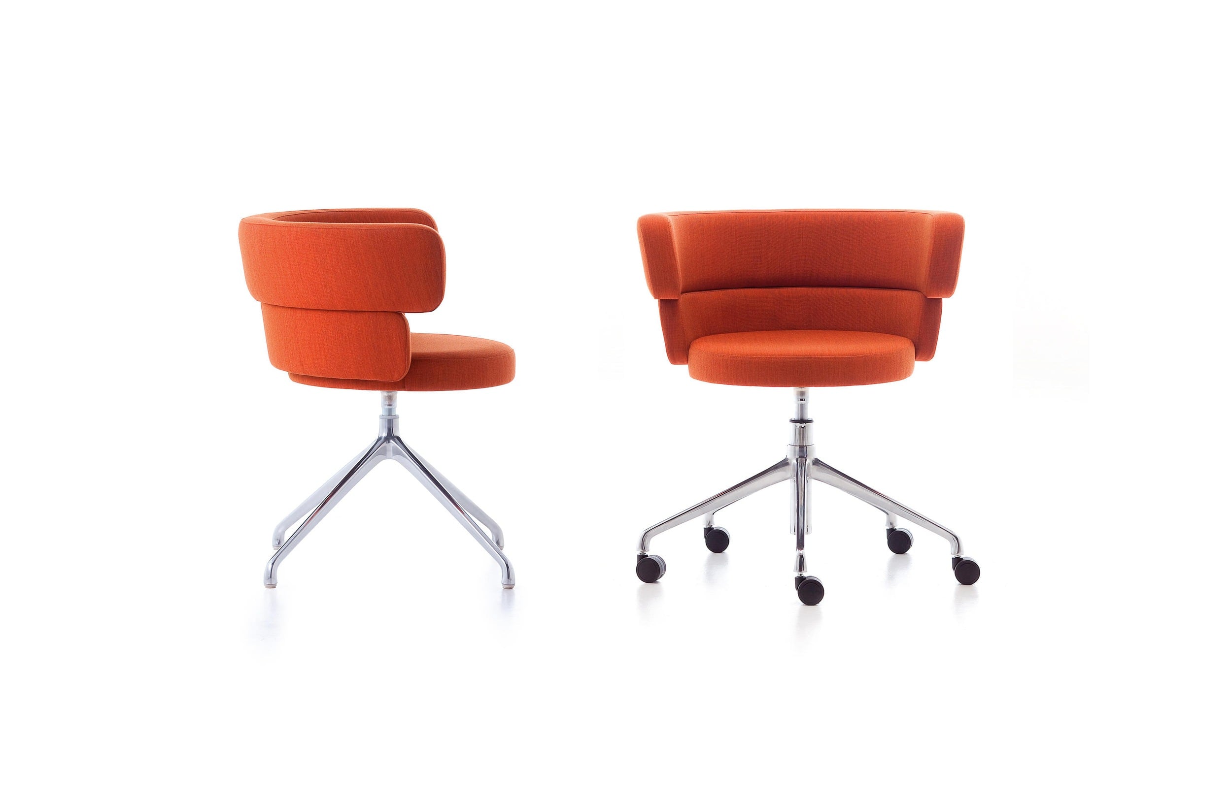 Dam is available upholstered in a variety of fabrics and can be finished in a single colour or with a gradient of different tones. Dam is available on a 4-way swivel or 5-way castor base and is also available as a stool, in both counter and bar height.