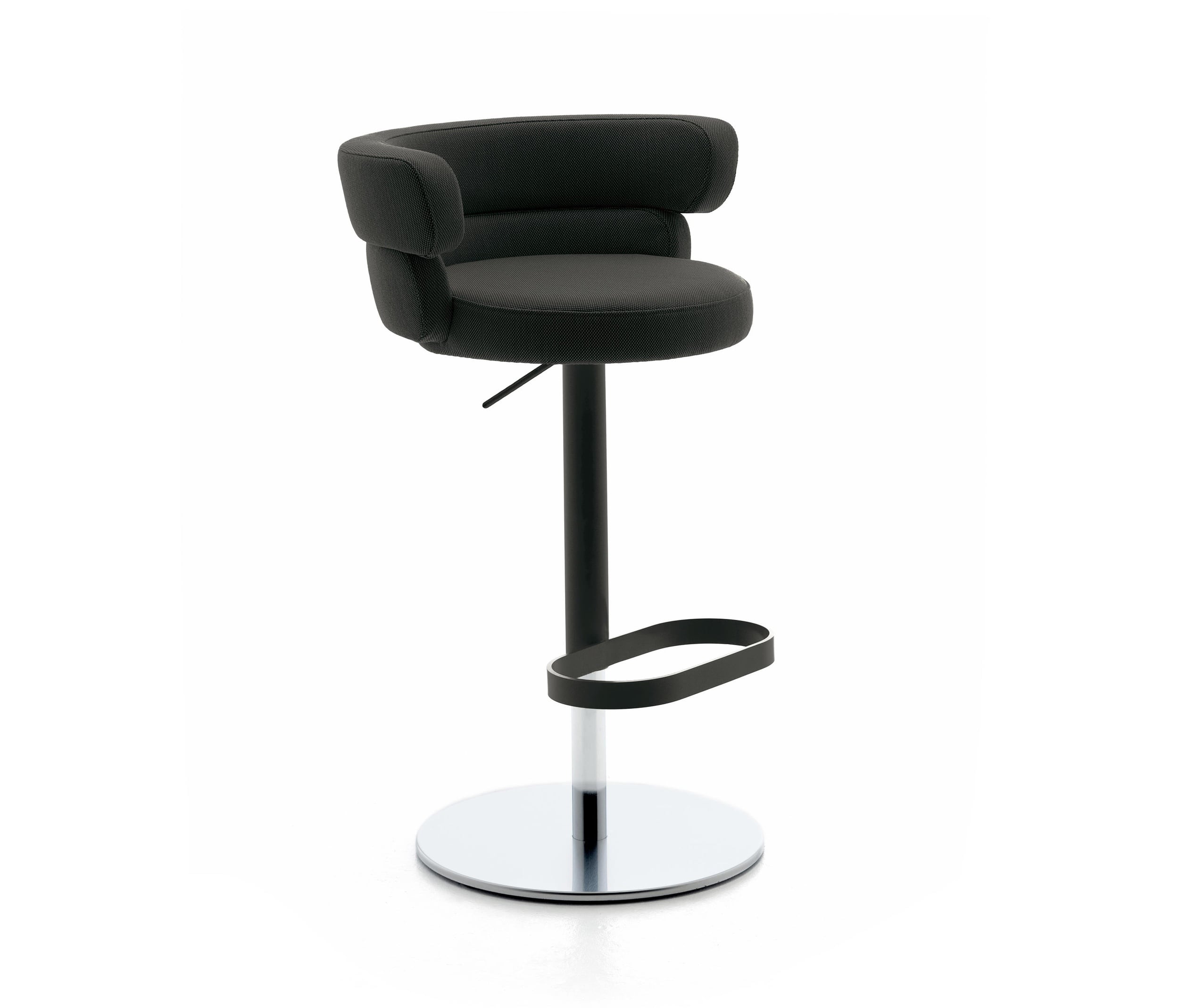 Dam is available upholstered in a variety of fabrics and can be finished in a single colour or with a gradient of different tones. Dam is available on a 4-way swivel or 5-way castor base and is also available as a stool, in both counter and bar height.