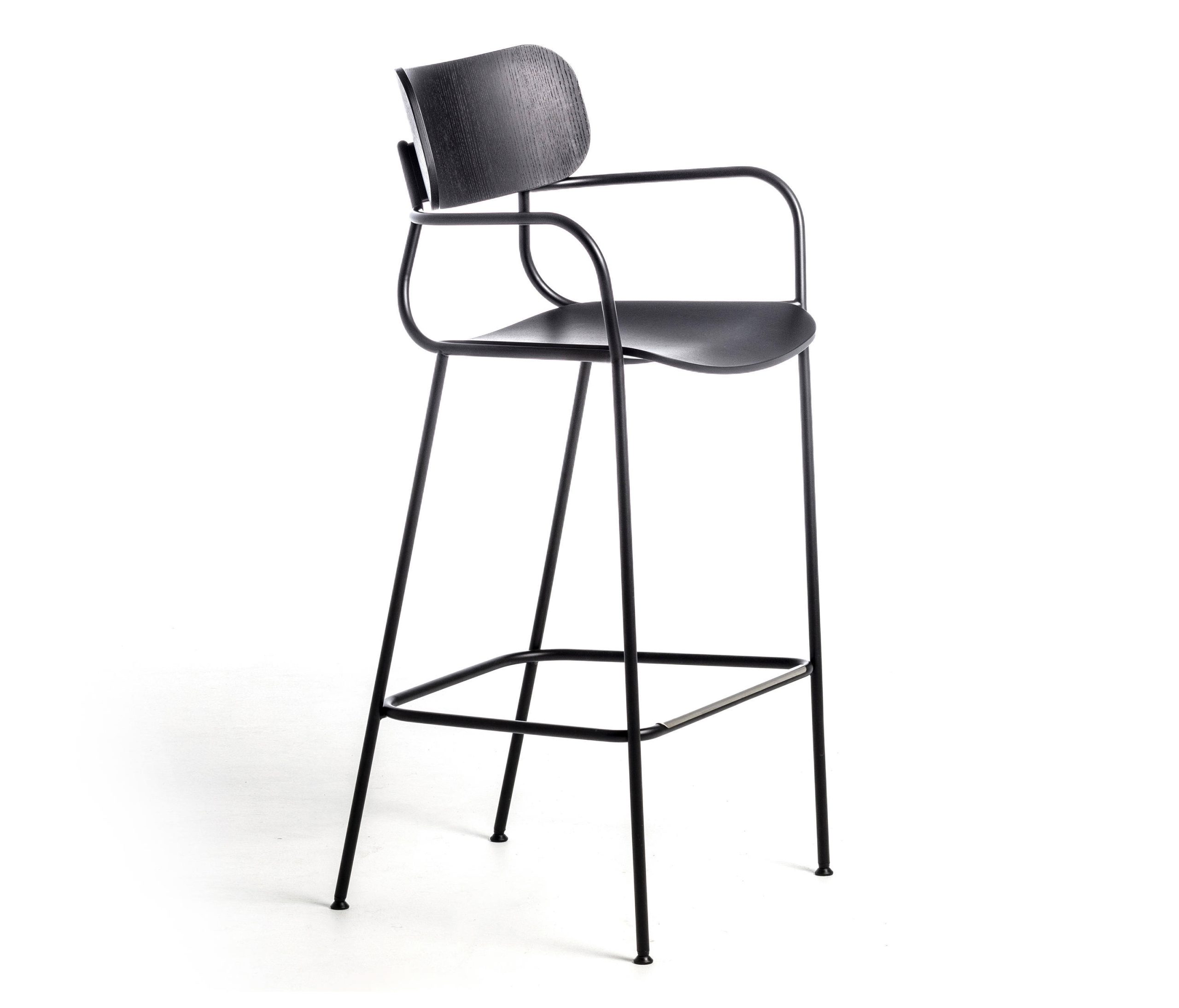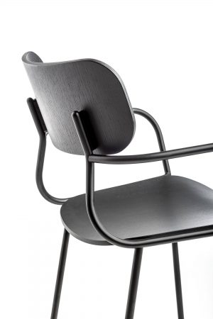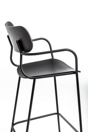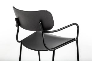 Sleek and graceful, Kiyumi conceals a complex construction design that makes the screws connecting the back and frame invisible, for an impeccably clean line. The Kiyumi collection includes chairs, armchairs and stools, available in Ash veneered plywood or upholstered in fabric or leather. Versatile, light and stackable, the Kiyumi seating range fits into many contexts, from the home to contract environments such as bars and restaurants, where its elegance and outstanding construction shine.