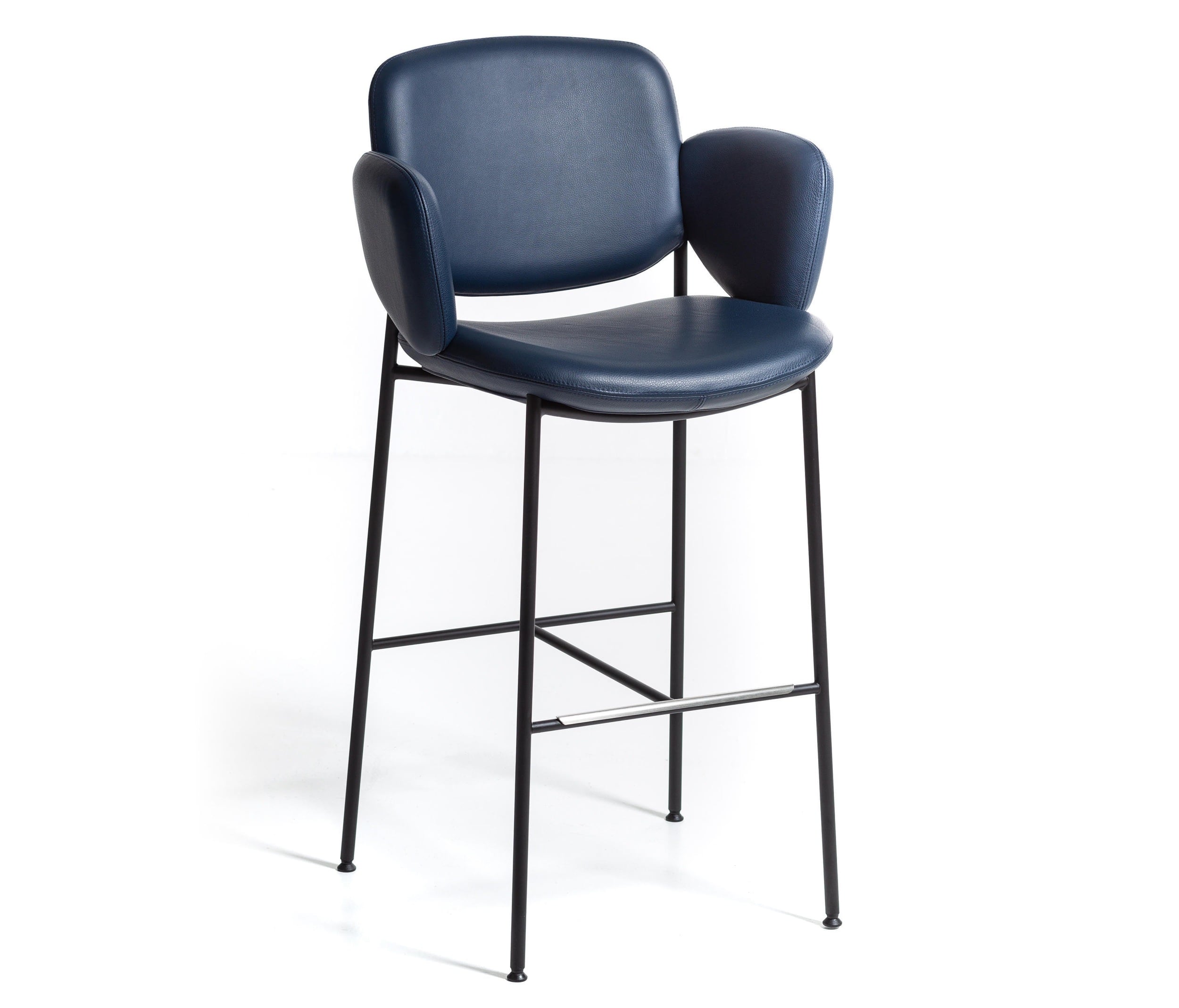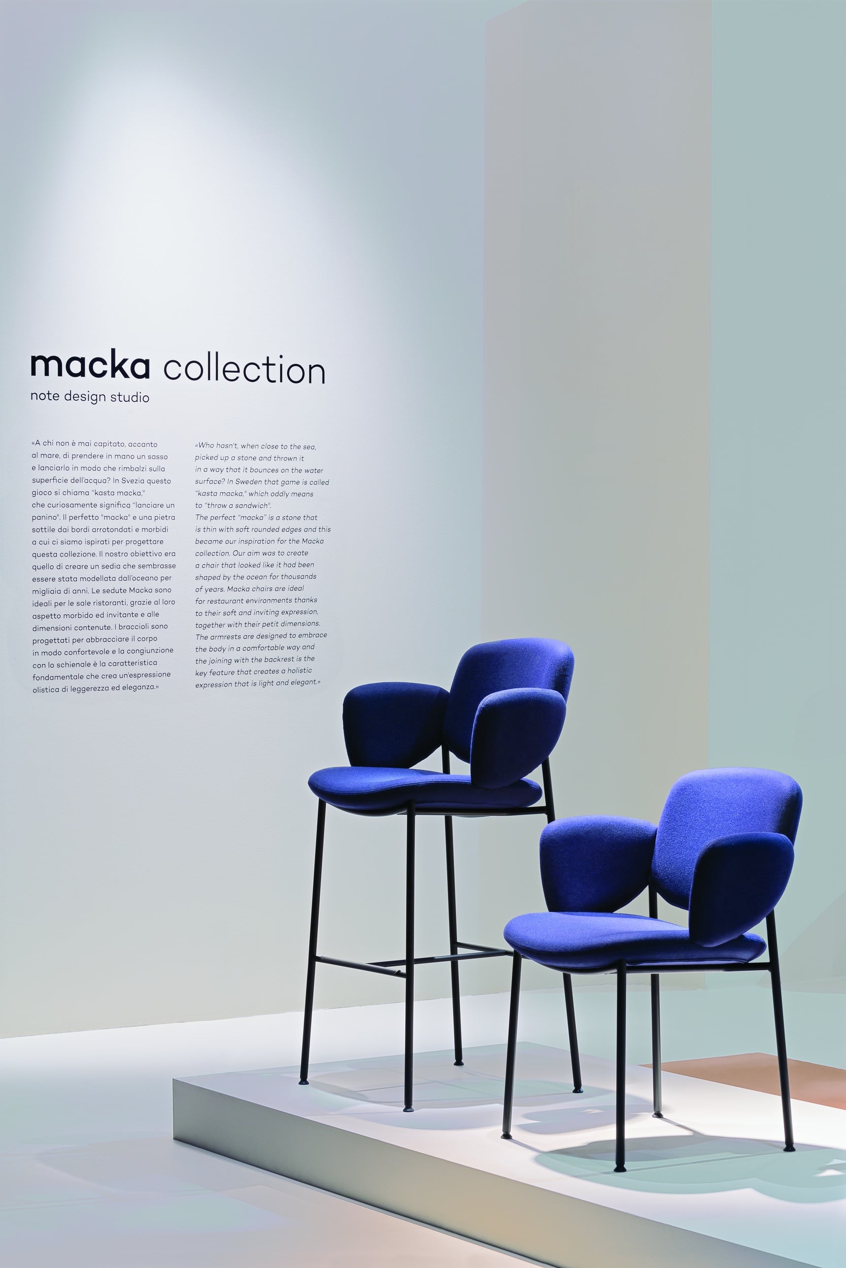 The unique way the arms and backrest converge, define the characteristics of the Macka chair, creating a holistic expression that is both light and elegant. The Macka armchair and stool are ideal for hospitality environments thanks to their inviting shape and compact dimensions.