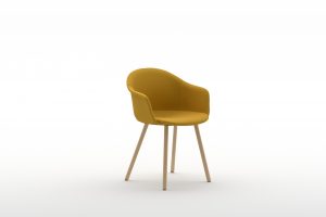 The polypropylene shell produced from a single mould is accompanied by a choice of seat inserts made of timber, upholstered or in tone-on-tone polypropylene in a slightly deeper shade. Màni Armshell, is also available in a fully upholstered version, which can be combined with ten different chair or stool bases featuring wooden legs, metal sled base, 4-way swivel base or with castors.