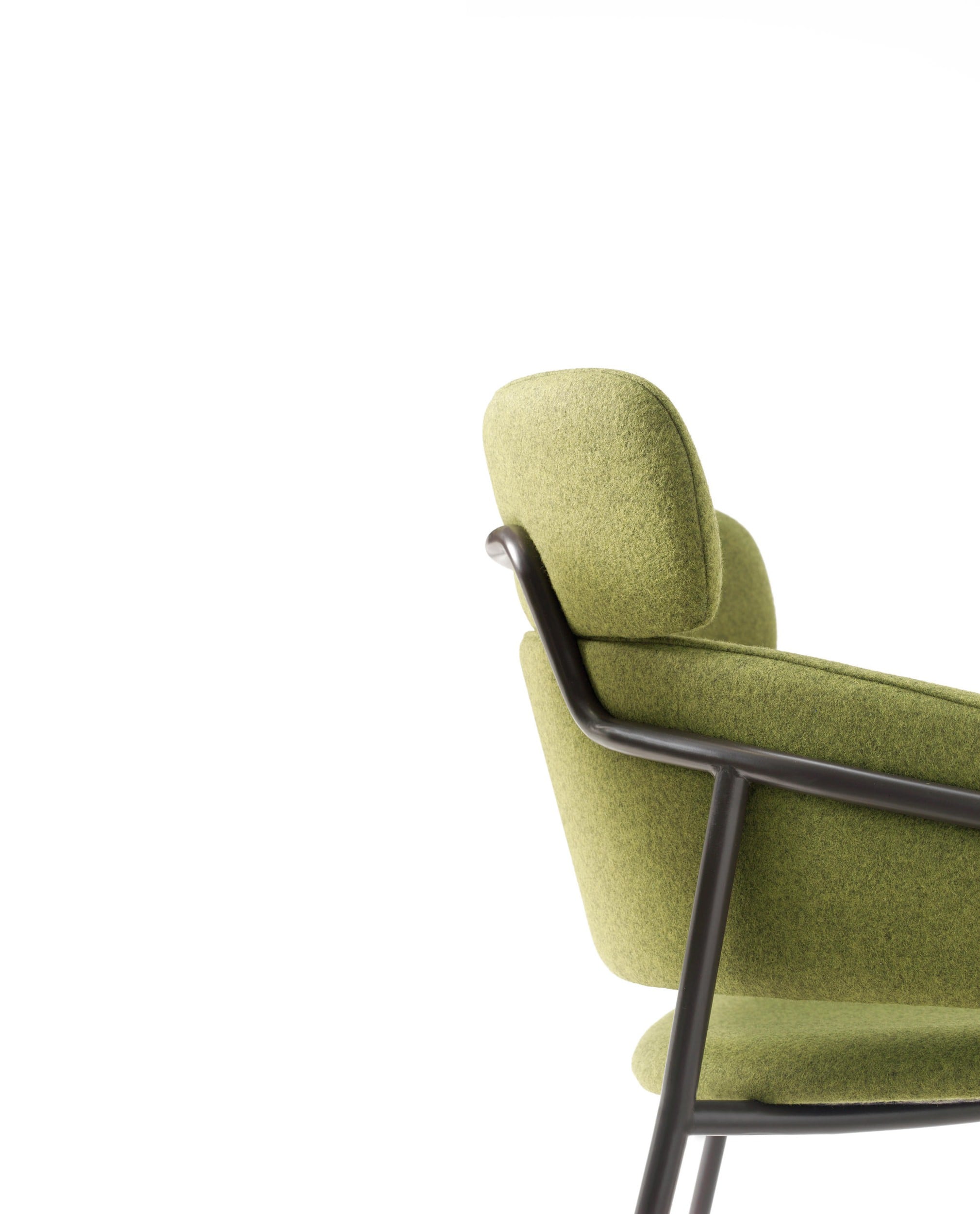 A visible metal frame outlines its unique profile and joins the padded sections together. Upholstery is available in a range of house fabrics and leathers which can be further enhanced by choice of powedercoat finishes. Strike is simple, yet sophisticated, adapting discreetly into the environment it inhabits.