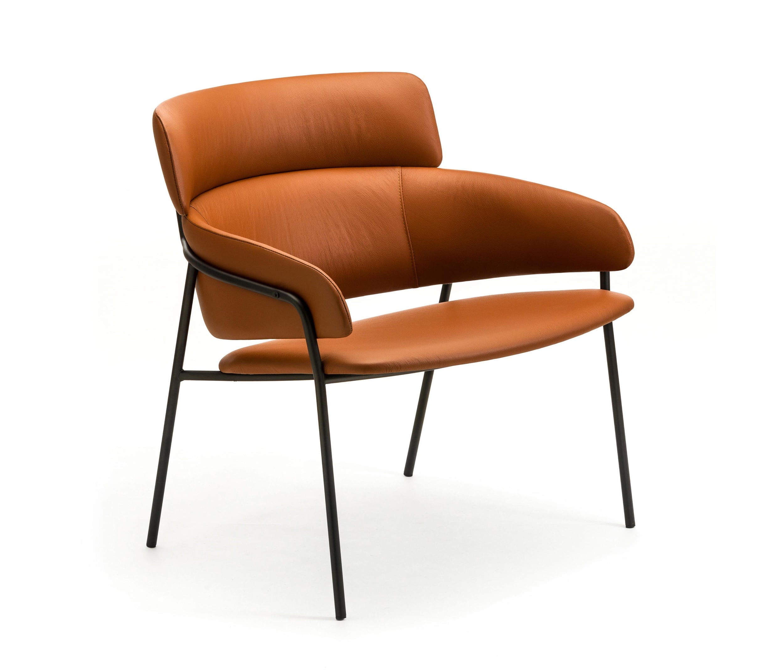 A visible metal frame outlines its unique profile and joins the padded sections together. Upholstery is available in a range of house fabrics and leathers which can be further enhanced by choice of powedercoat finishes. Strike is simple, yet sophisticated, adapting discreetly into the environment it inhabits.