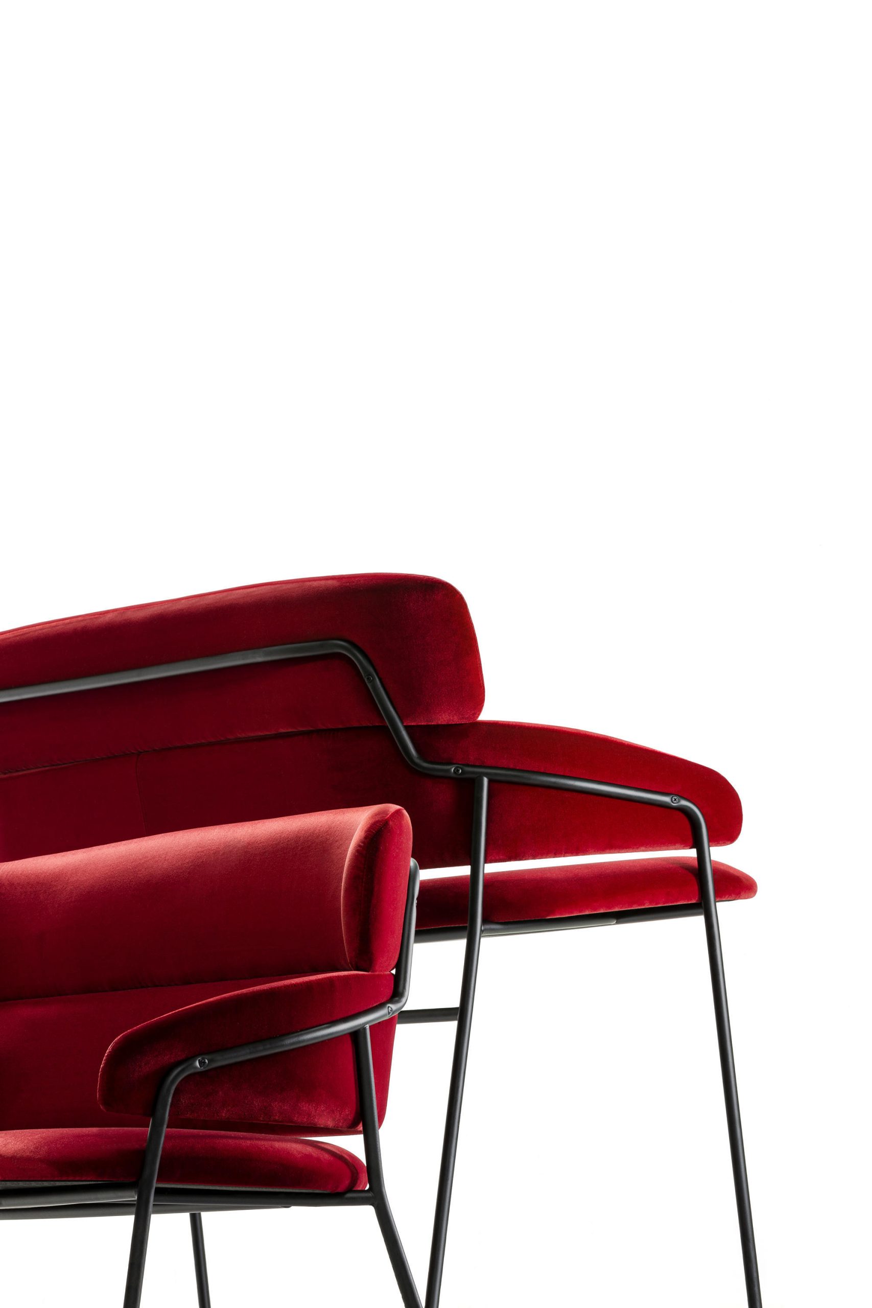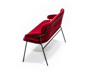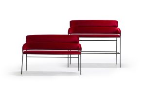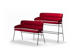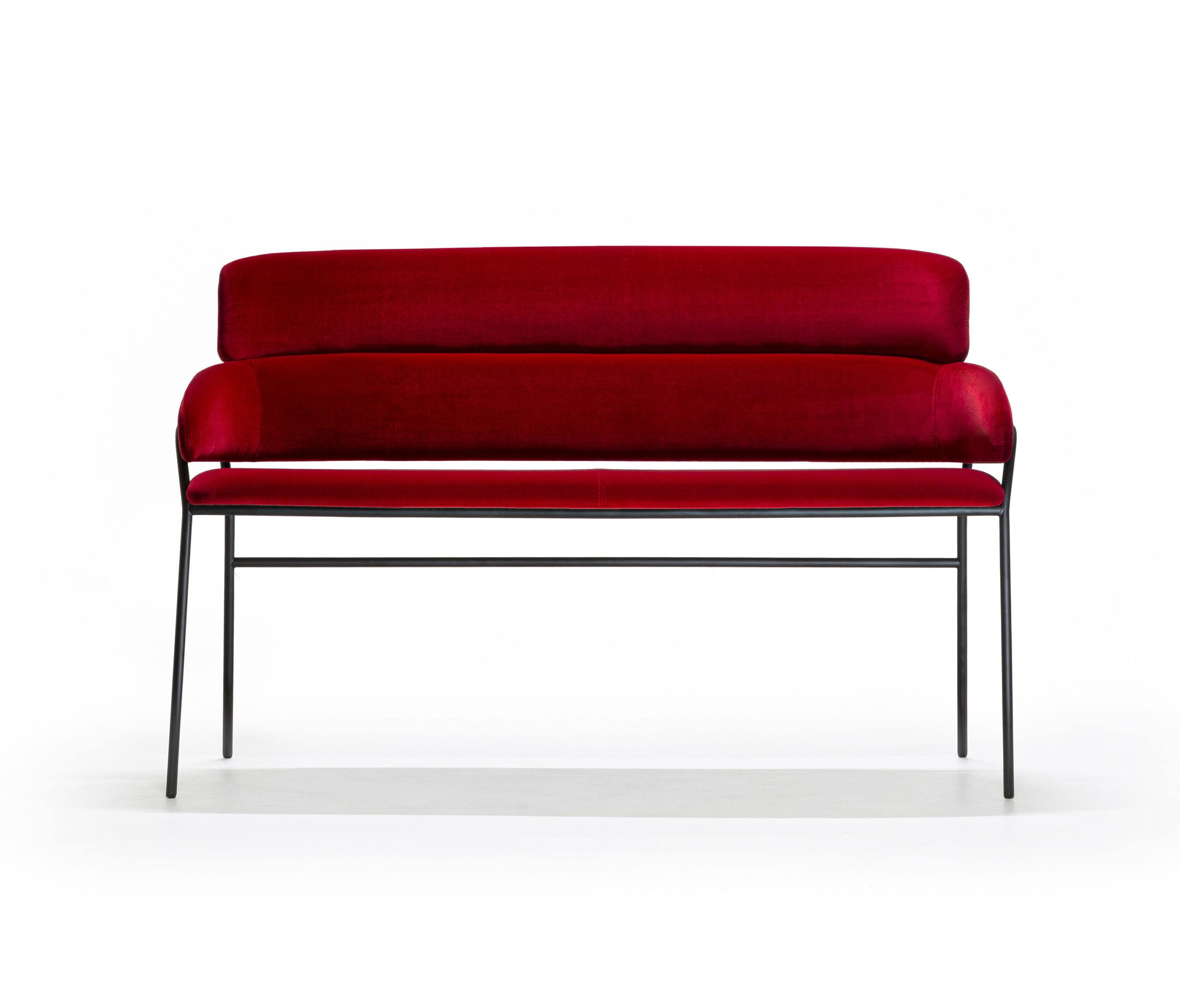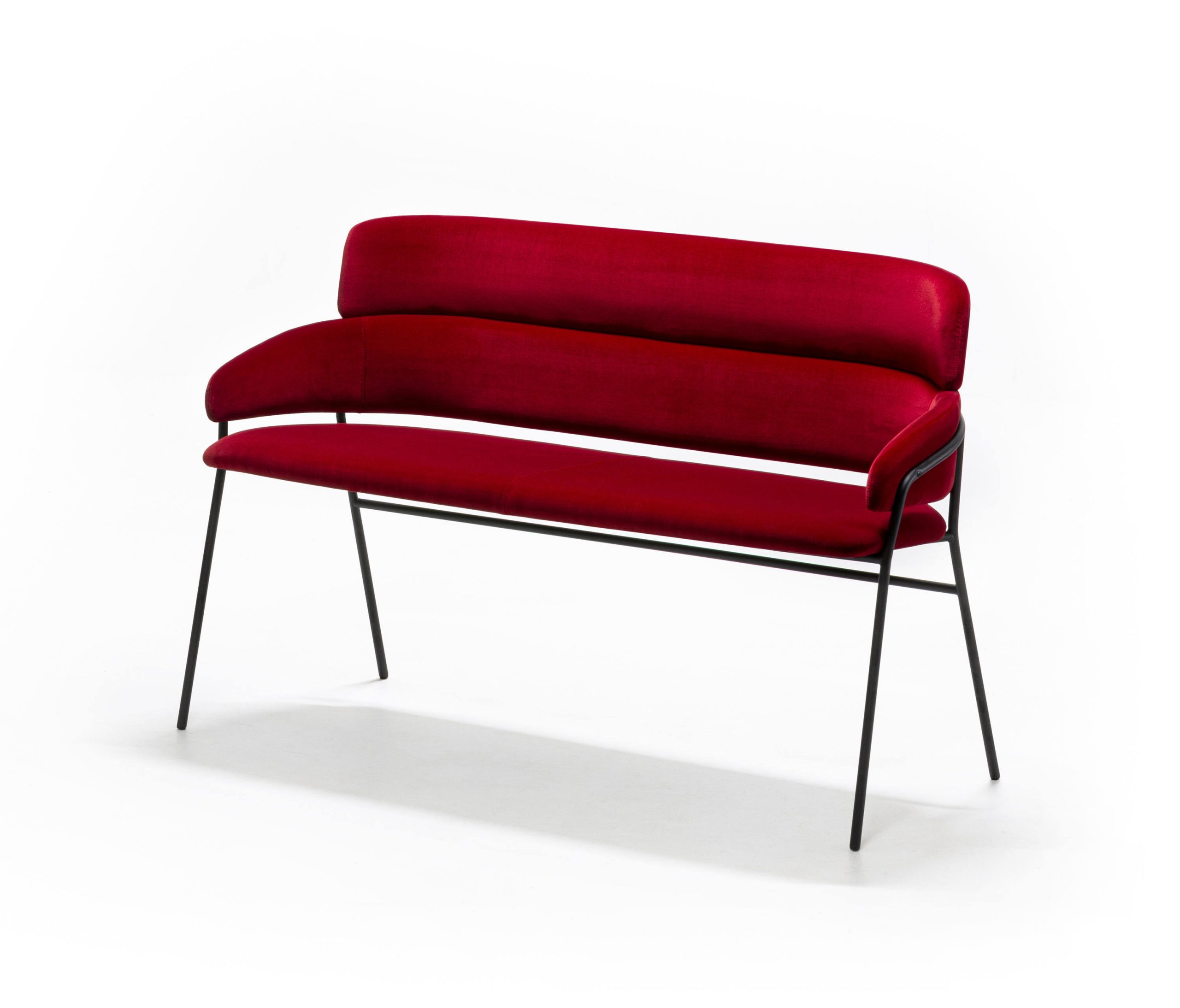 A visible metal frame outlines its unique profile and joins the padded sections together. Upholstery is available in a range of house fabrics and leathers which can be further enhanced by choice of powedercoat finishes. Strike is simple, yet sophisticated, adapting discreetly into the environment it inhabits.