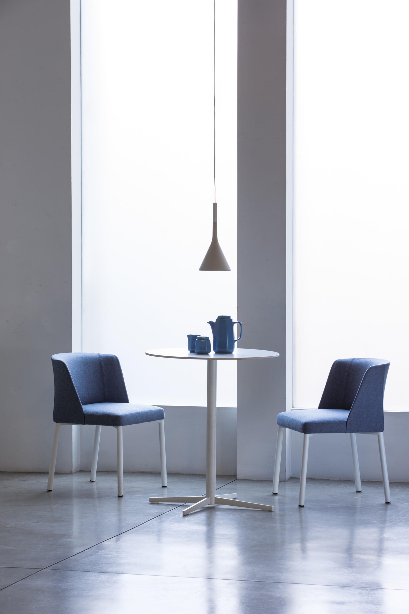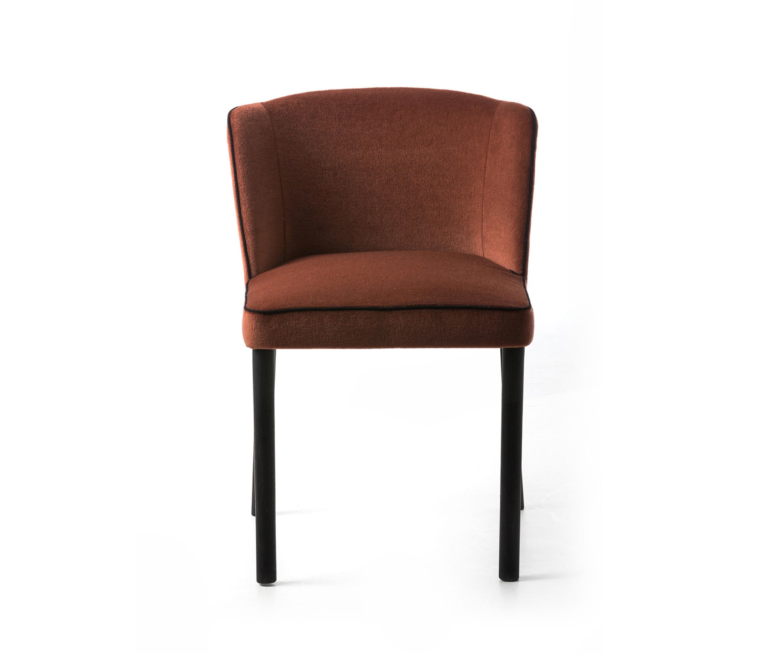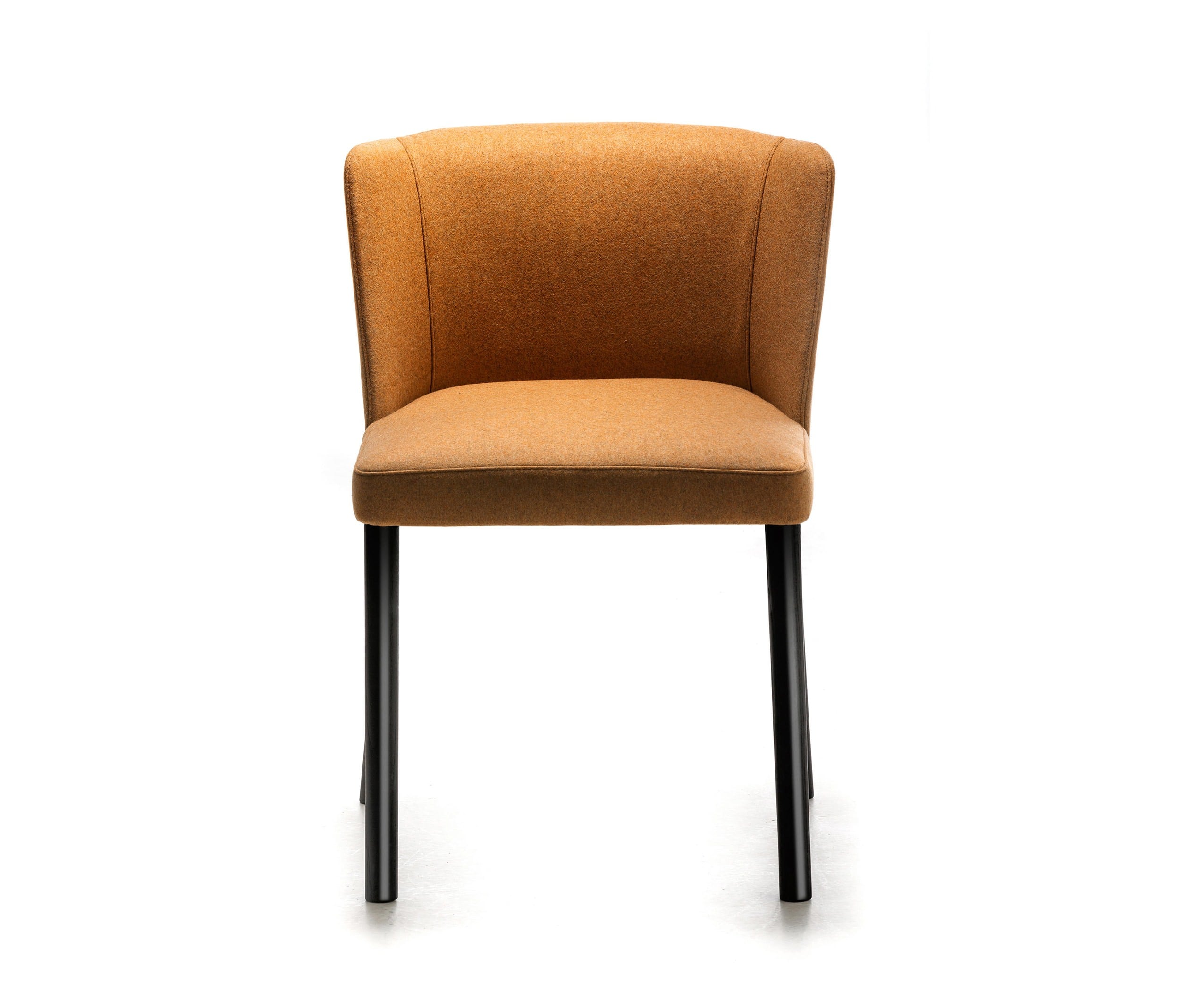 The upholstered seat, constructed using fireproof foam, rests upon a 4-leg frame made of steel or solid Ash wood while the upholstered back, available in two heights, is soft and welcoming, guaranteeing superior comfort.