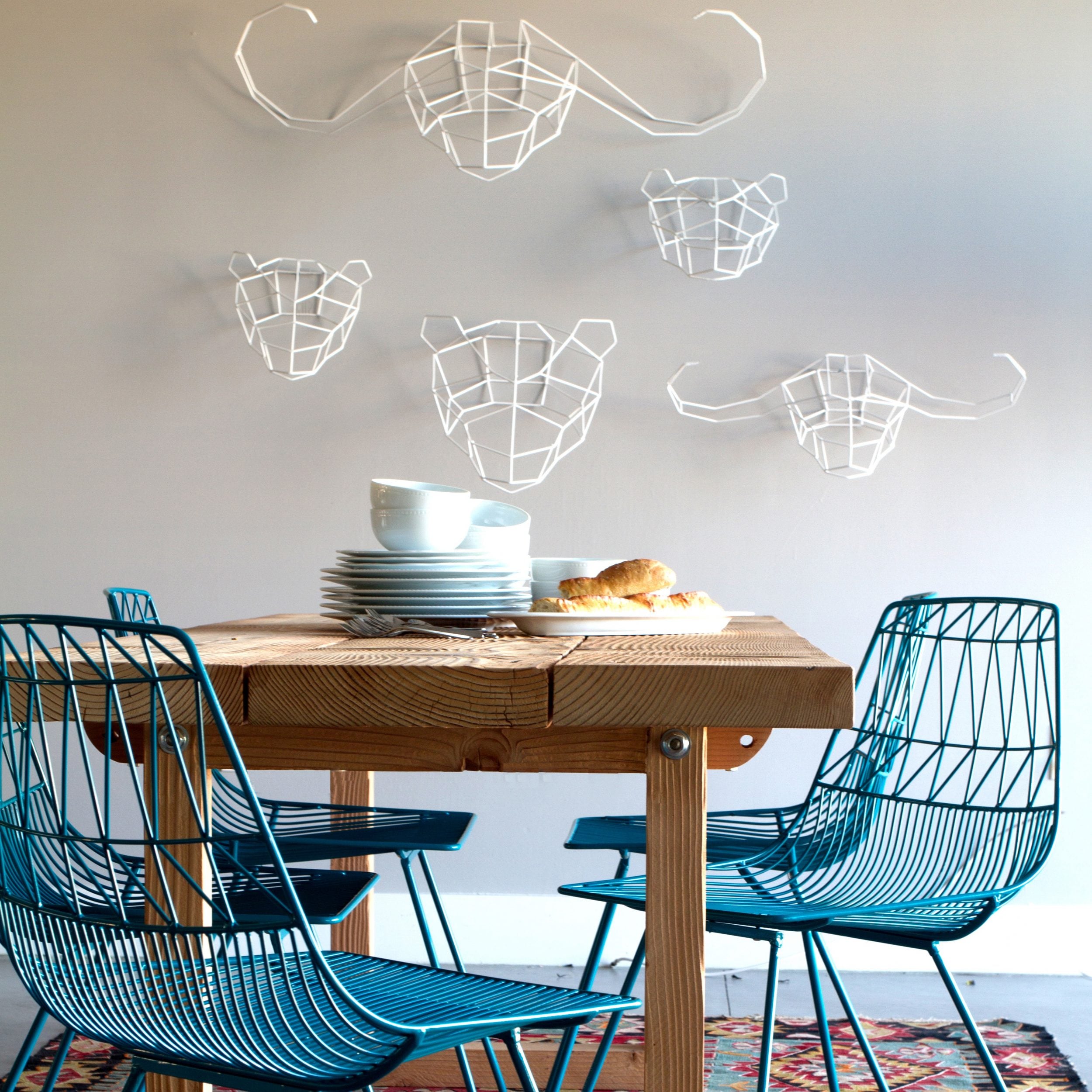 Trophy Heads made from metal, not animals. Bend have created organic digital versions of our native counterparts in a mathematical, engineered form. The shapes may look simple but in actuality they are created with bends and angles that are complex formulas. Trophy Heads can be used as hooks and are the perfect objects to decorate your space with a little humour.