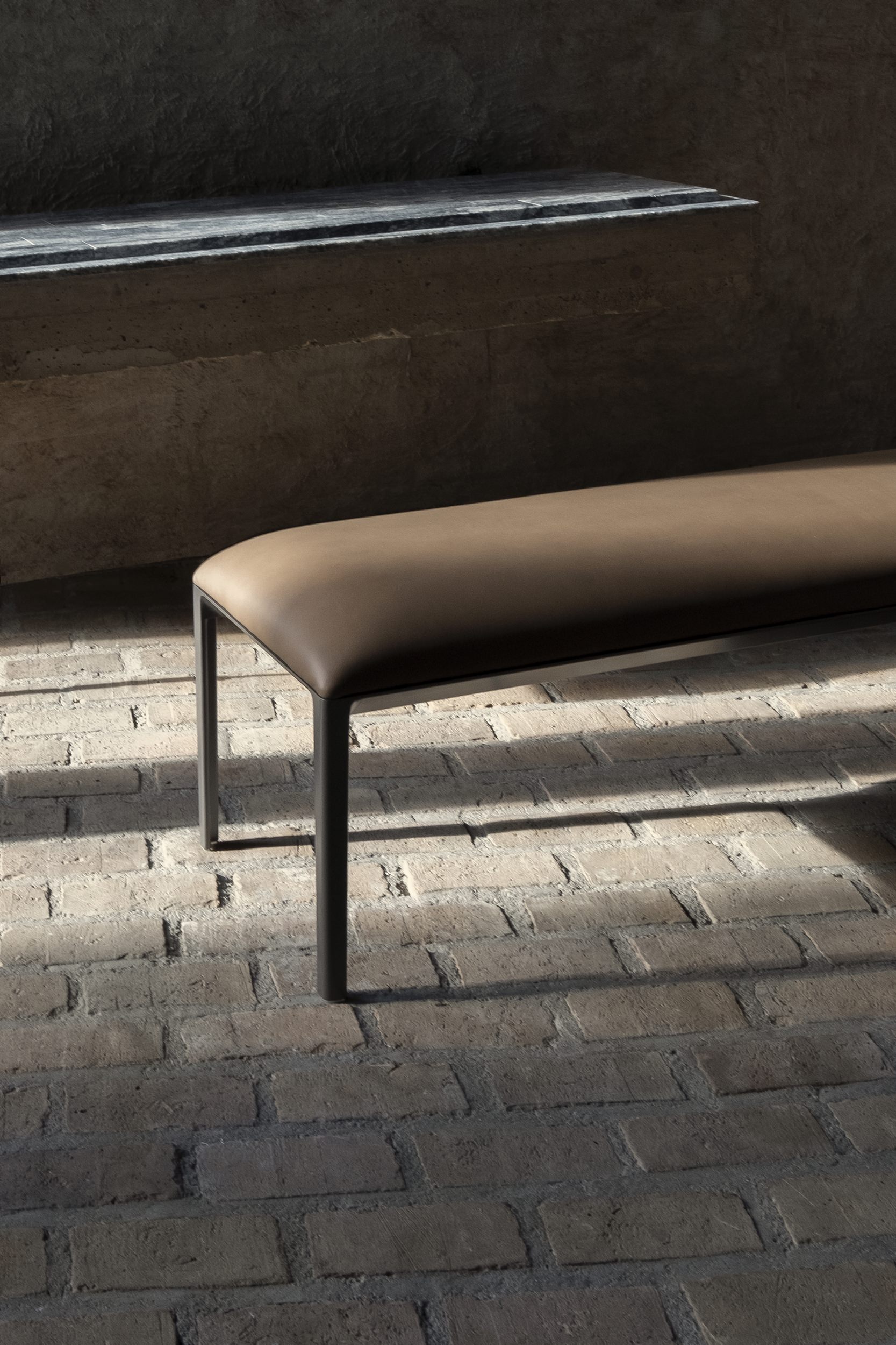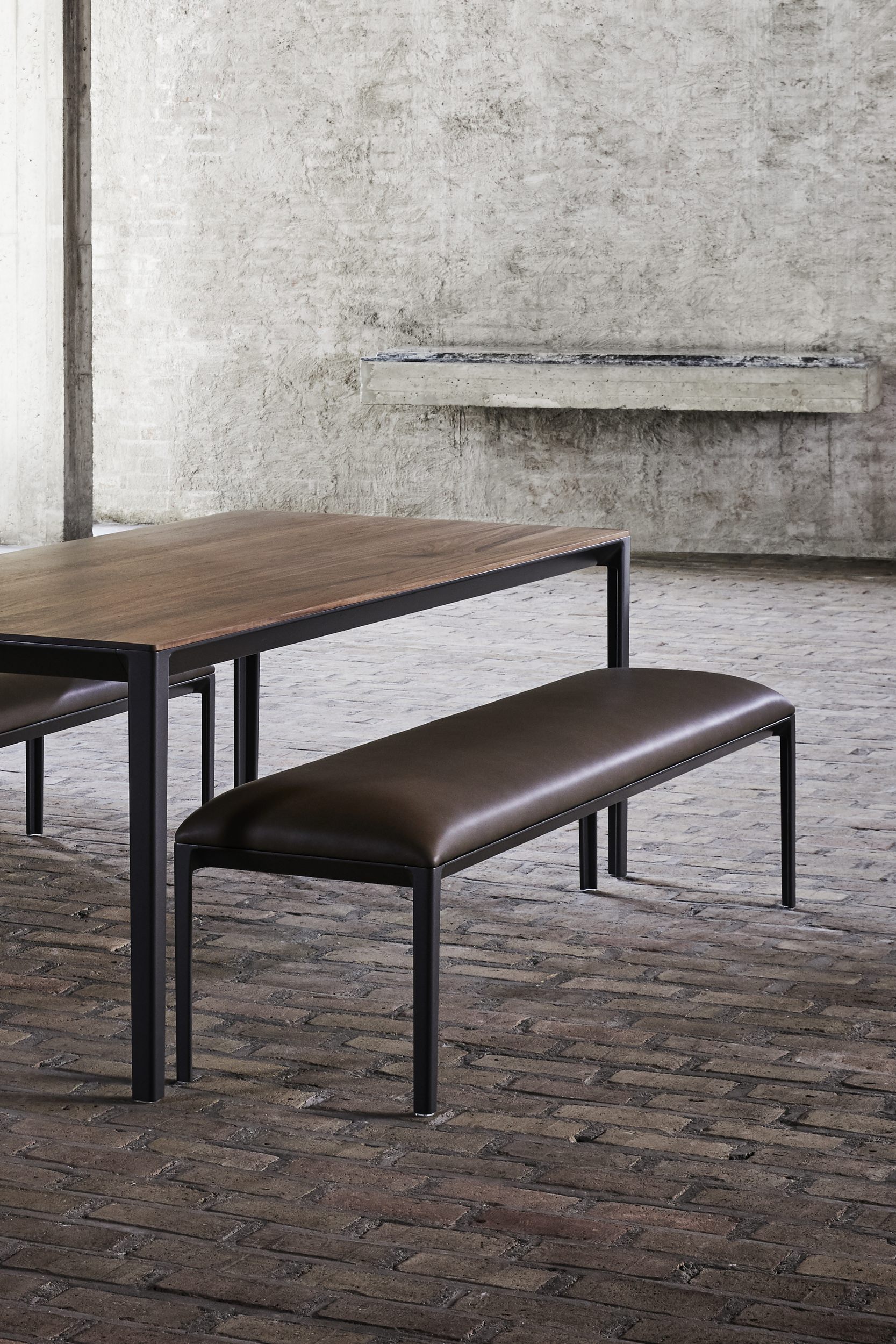 Able is a versatile bench that can be used alone, in conjunction with one of the Able tables or any table that fits the Able bench dimensions. The lightweight frame is constructed using cast aluminium legs and aluminium support rails and is available powdercoated in white or graphite. Suitable for both residential and contract use, Able is available in a wide selection of fabric or leather upholstery options.