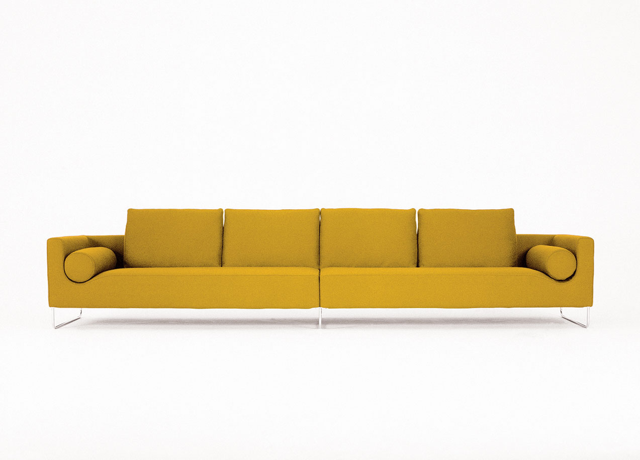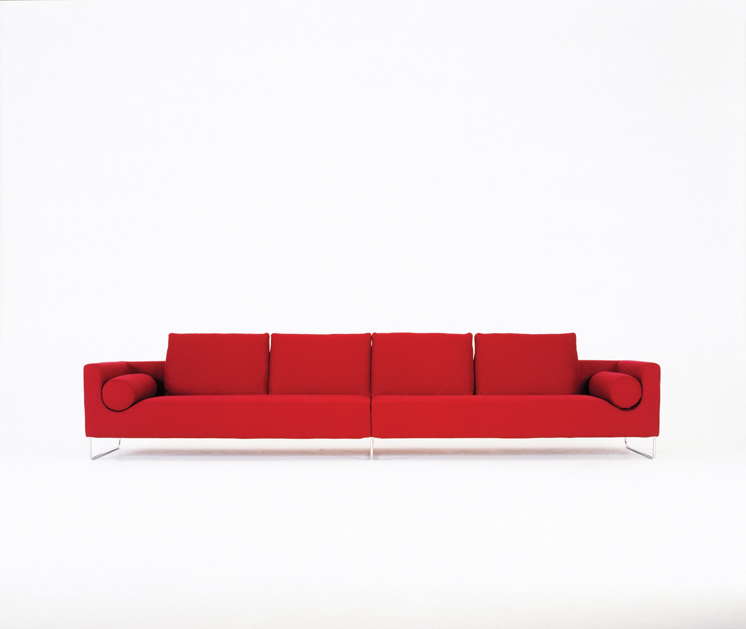 Single-arm and armless pieces are available in various sizes and can be combined to make an almost infinite number of configurations. Steel frames are constructed to allow one piece to be suspended off another for a clean appearance. Removable covers are also available for easy cleaning or replacement.