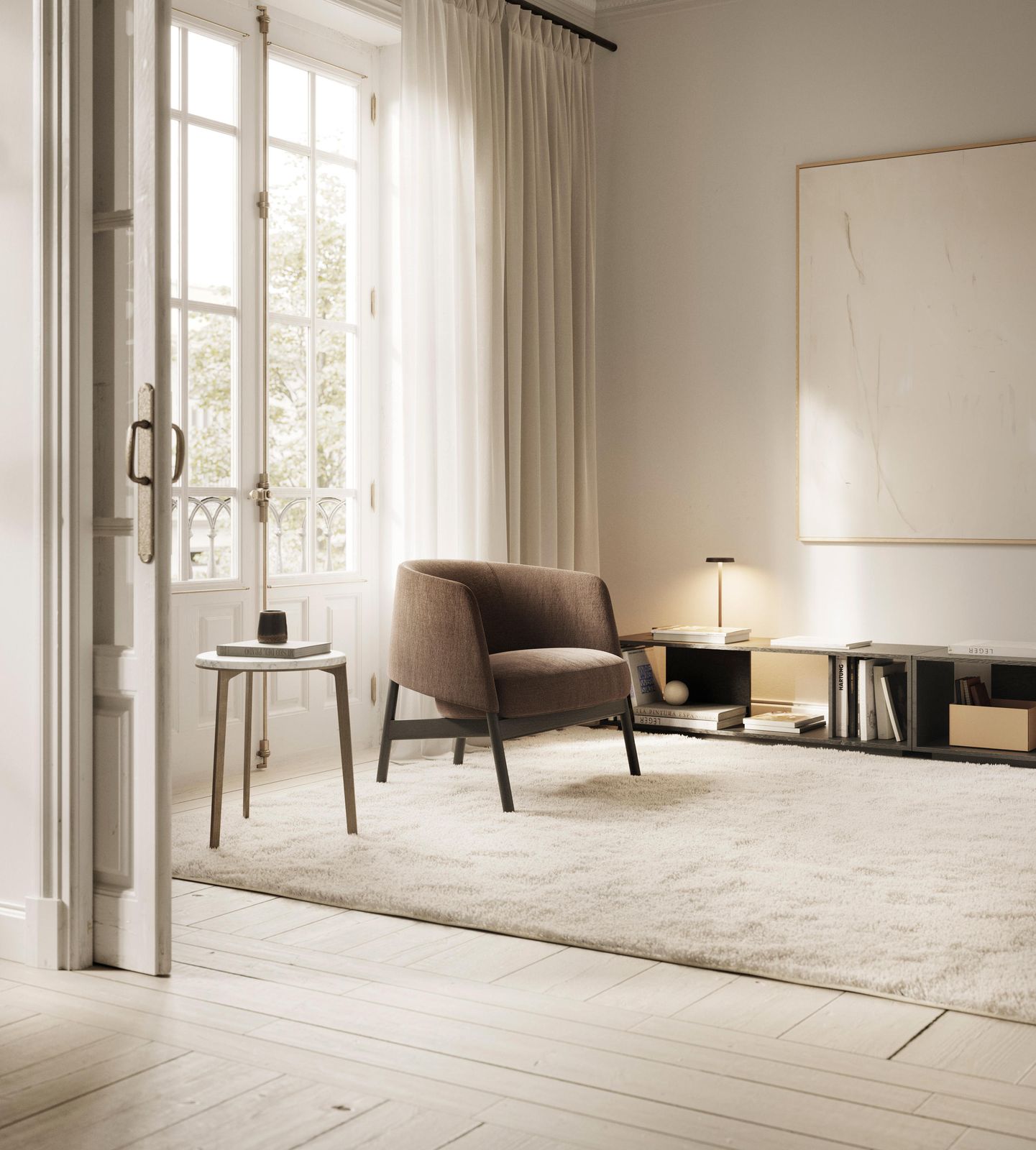Collar Armchair is a versatile chair fit for all occasions. The crisp perimeter of the backrest wraps you in plush comfort. A generous seat rests within the nook of the back, perched on the supportive linear structure.