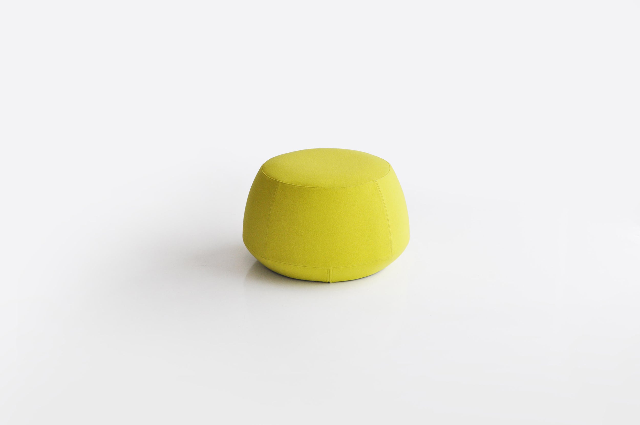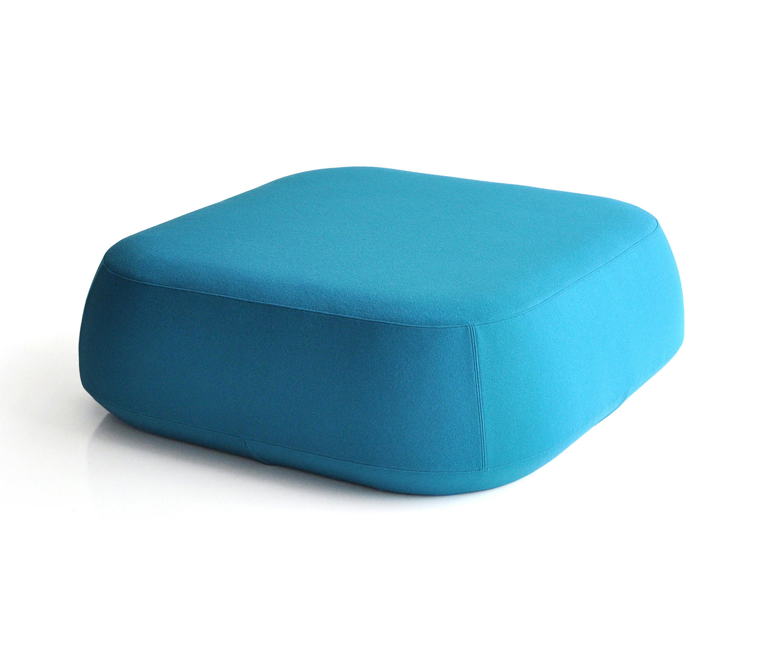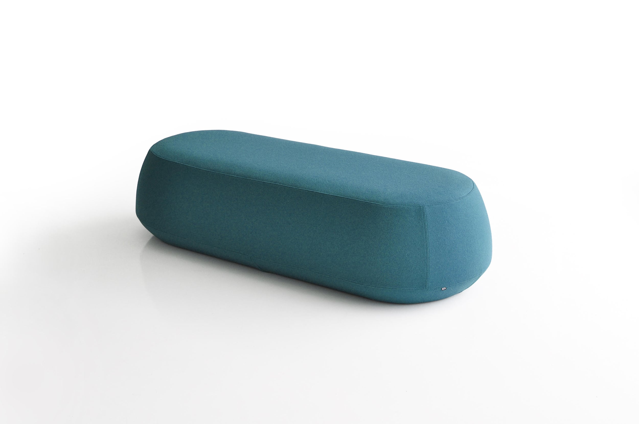 The Ile series of ottomans share the same undercut prominent on the U Turn lounge chair. This detail is not only a visual feature, lightening the look of the piece by providing foot space, but a practical one; making sitting down and standing up easier as well as preventing the occurrence of soiling caused by footwear.