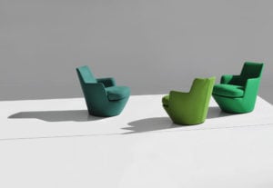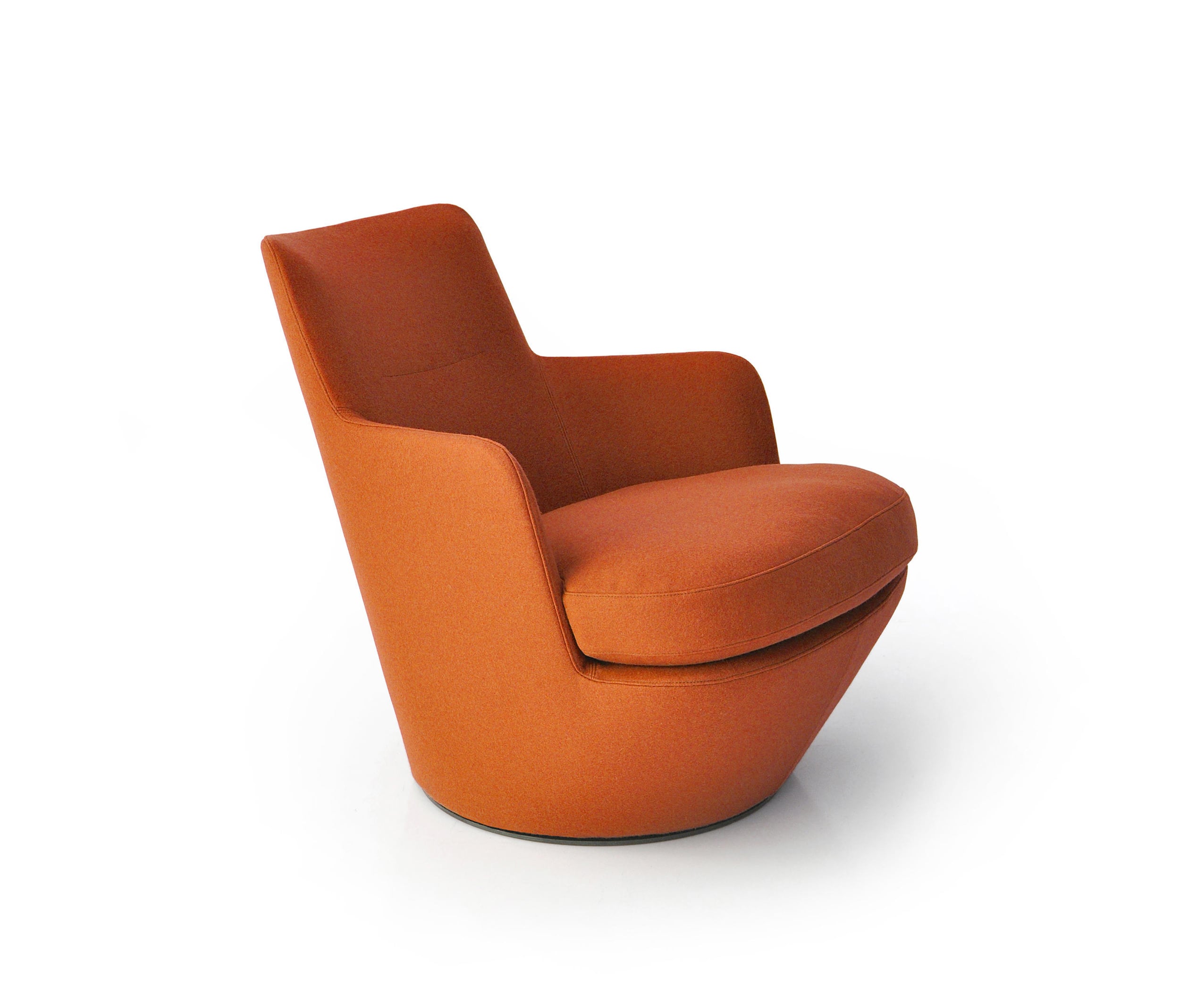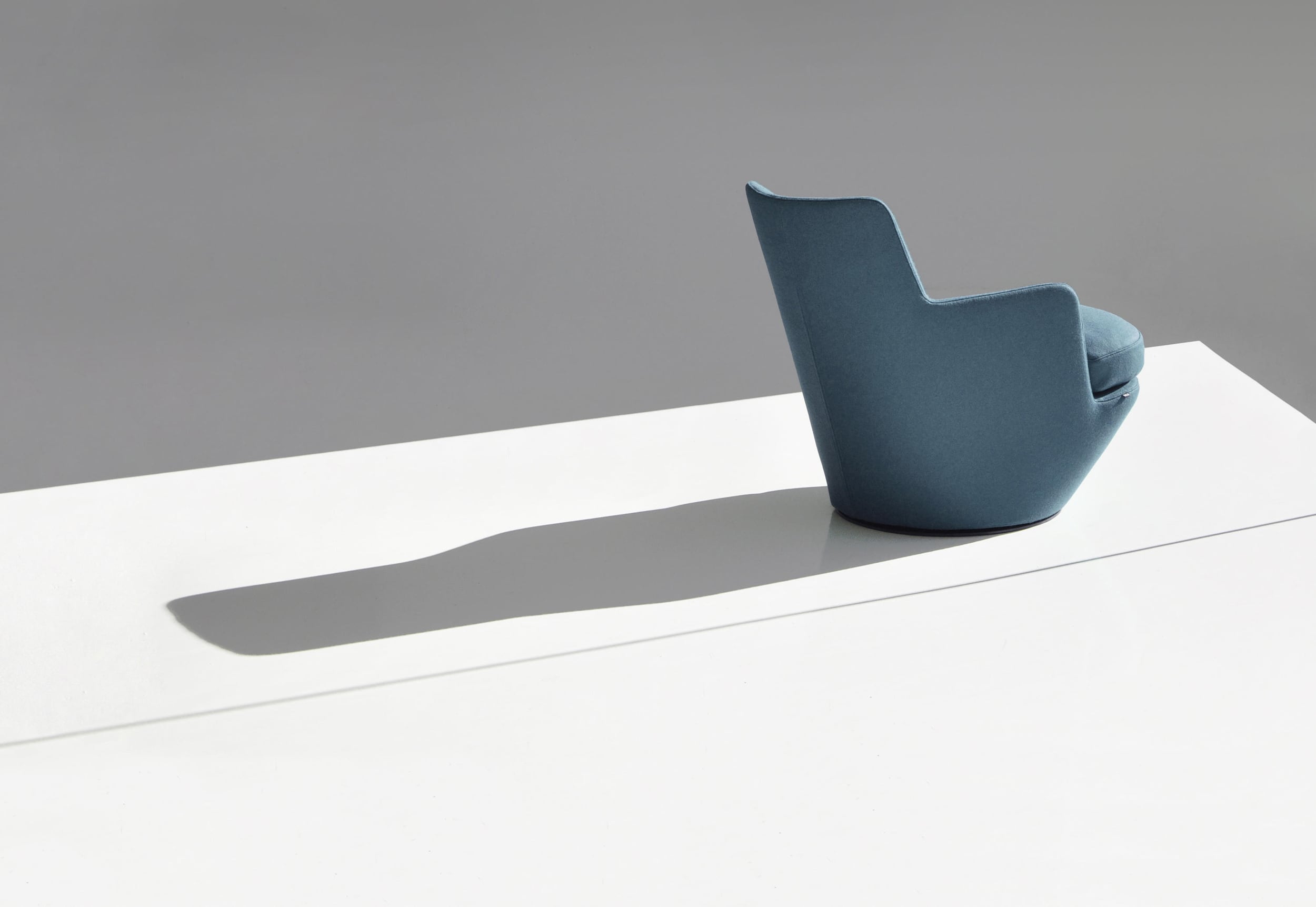 The Turn collection consists of the Hi Turn, My Turn, Lo Turn and U Turn swivel lounge chairs, the U Pouf and the U 2 Seater sofa. Lounge chairs are available with or without a memory return mechanism to bring the chair back to its intended position and fabric covers are removable for easy cleaning or replacement.