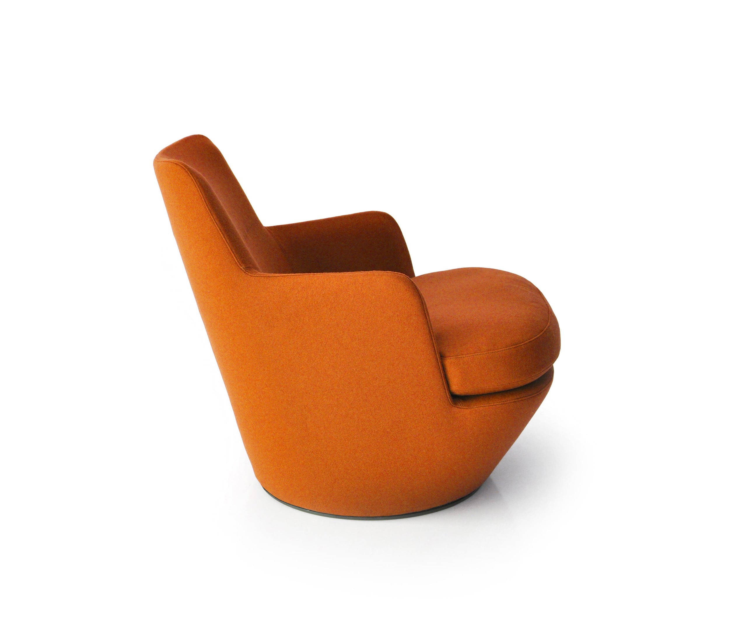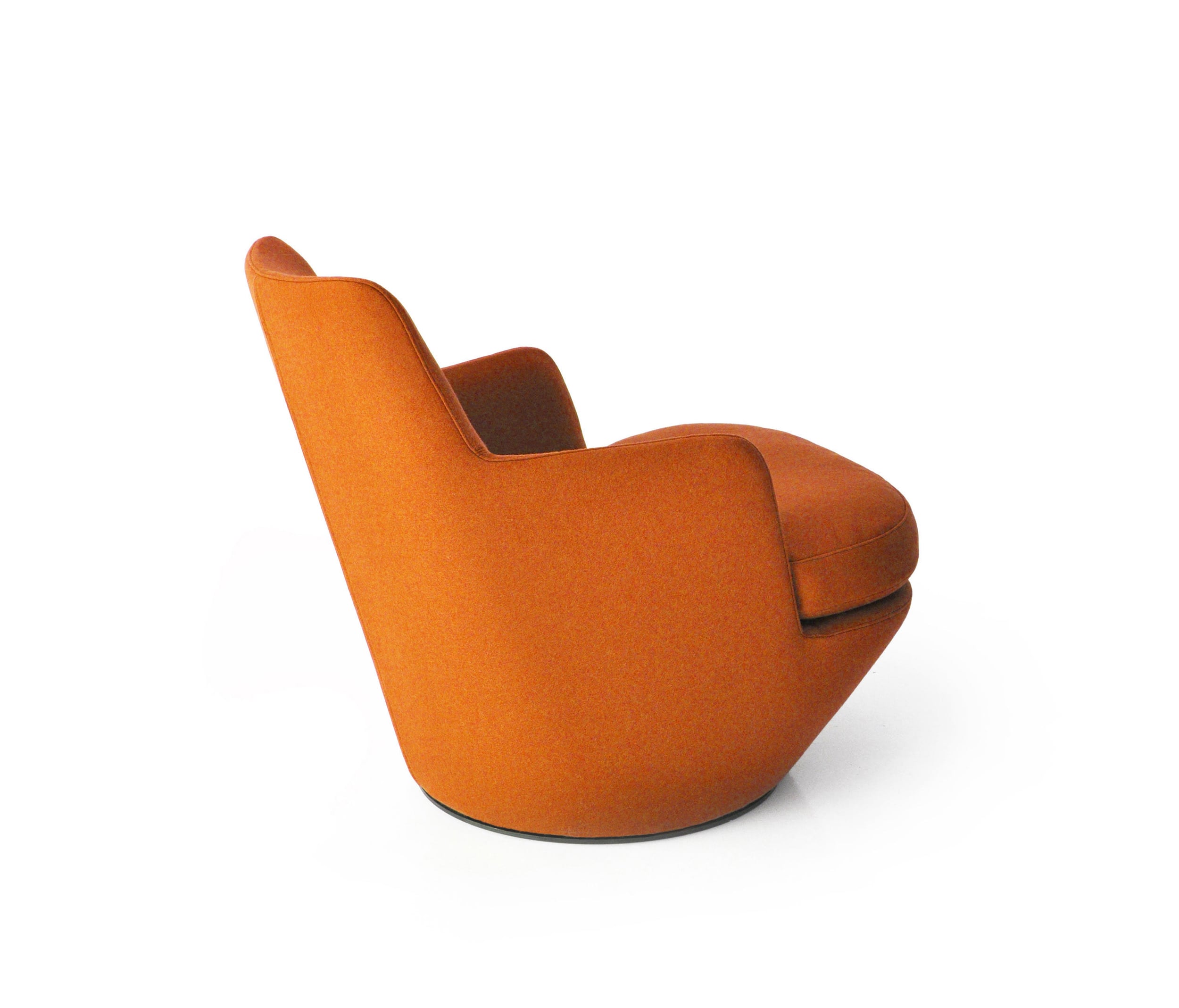 Part of the ‘Turn’ lounging collection from Bensen, the Lo Turn is a low-back swivel lounge chair with a discrete circular metal base that rotates smoothly through 360_. The combination of an internal steel frame, injection molded cold foam and a soft down seat make for an inviting and comfortable chair with a tailored appearance.