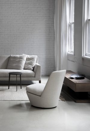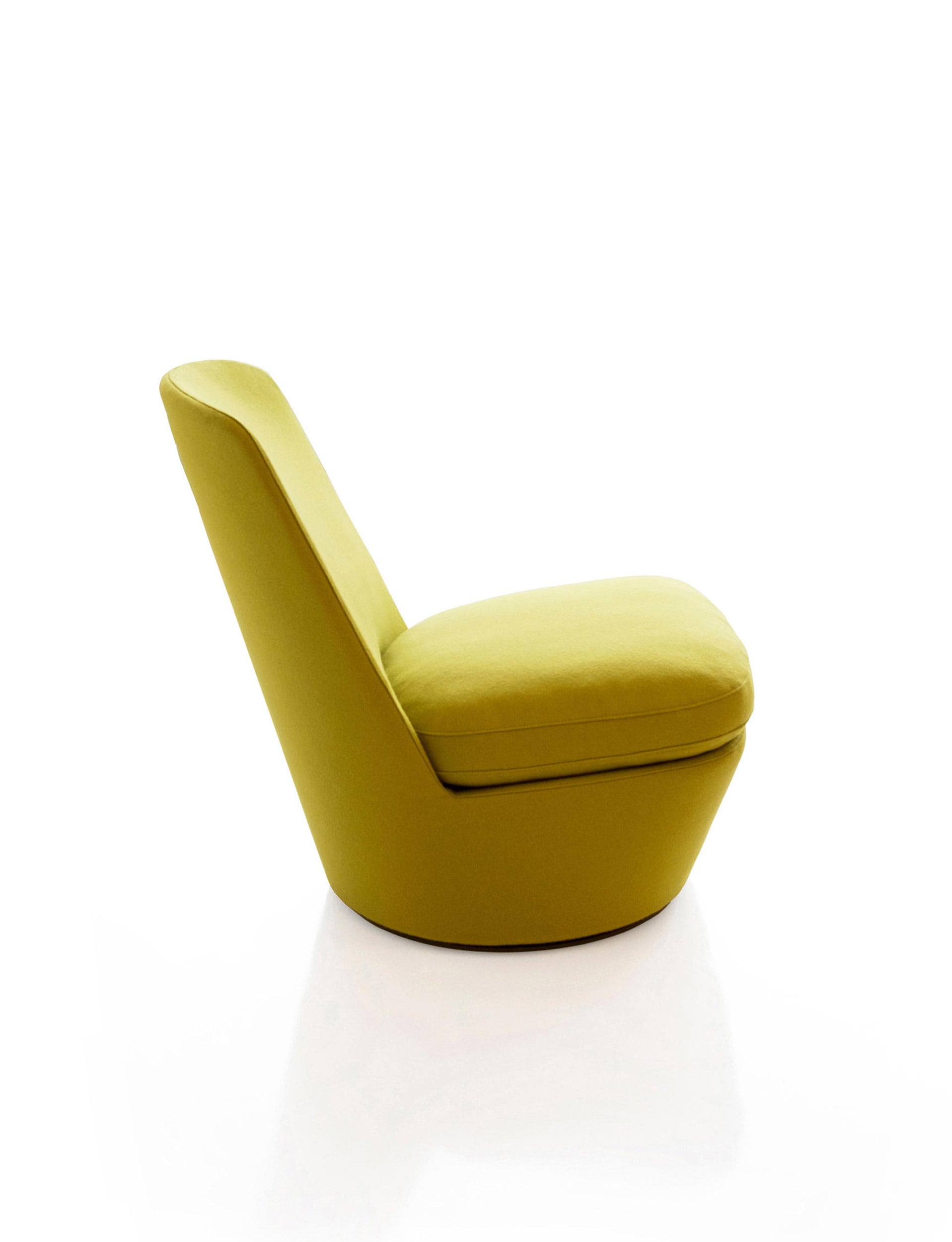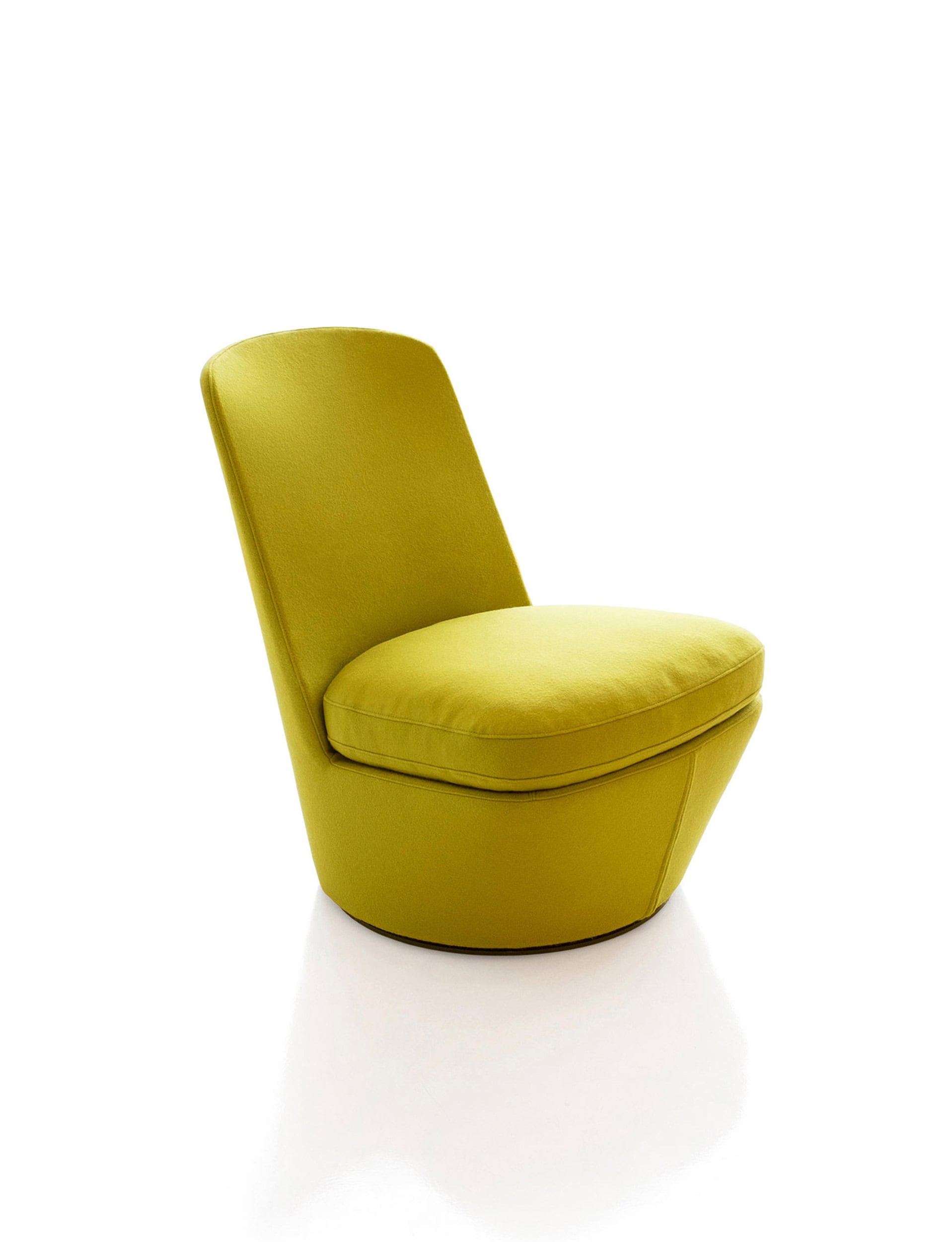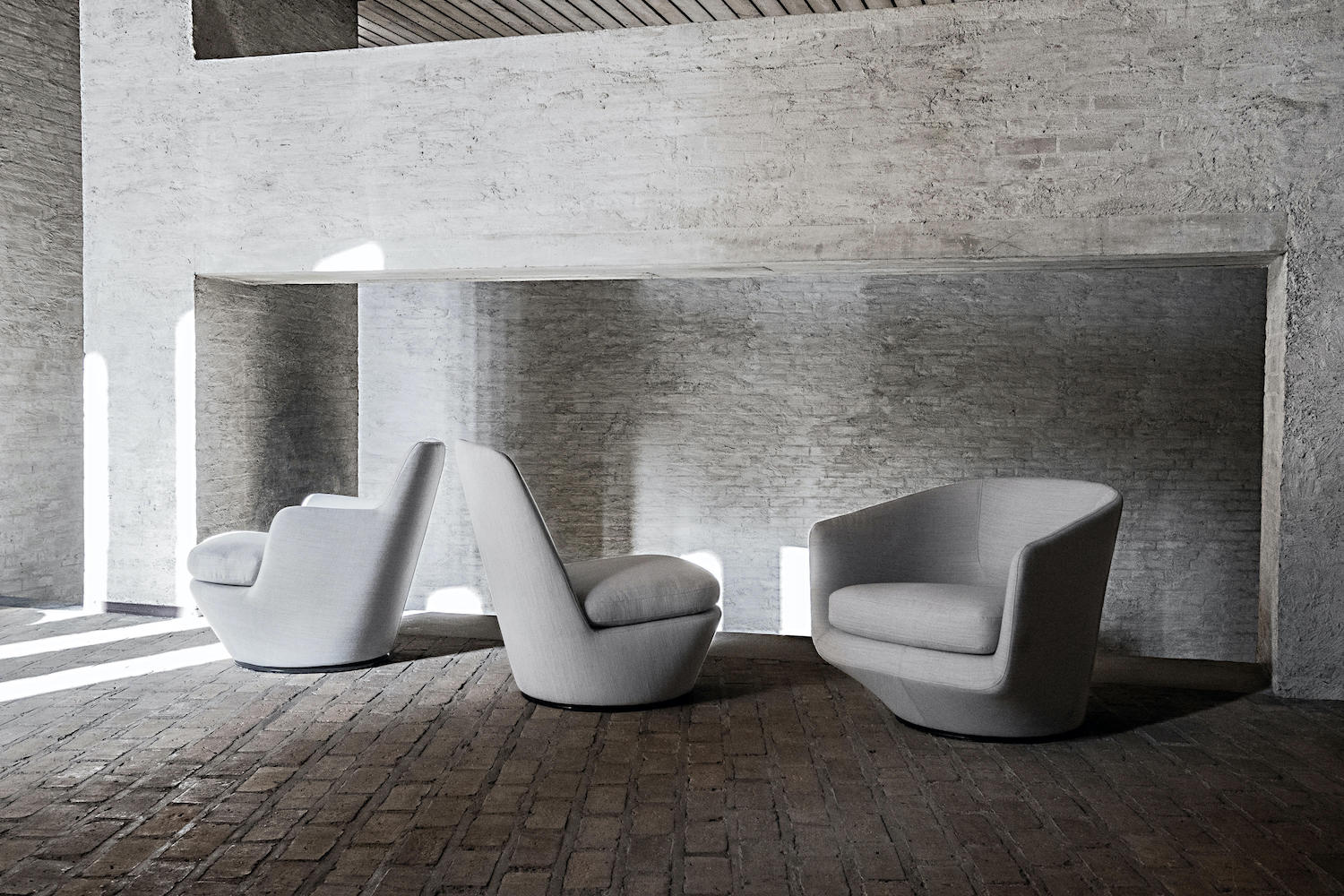 The Turn collection consists of the Hi Turn, My Turn, Lo Turn and U Turn swivel lounge chairs, the U Pouf and the U 2 Seater sofa. Lounge chairs are available with or without a memory return mechanism to bring the chair back to its intended position and fabric covers are removable for easy cleaning or replacement.