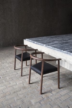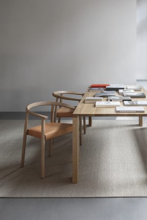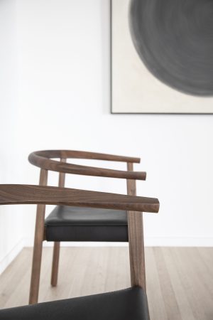 The Tokyo nods to traditional Danish and Japanese designs while maintaining an active footing in the present. A continuous ribbon of shaped solid wood creates the distinctive back of the Tokyo chair, connecting to the legs with traditional mortise and tenon construction.