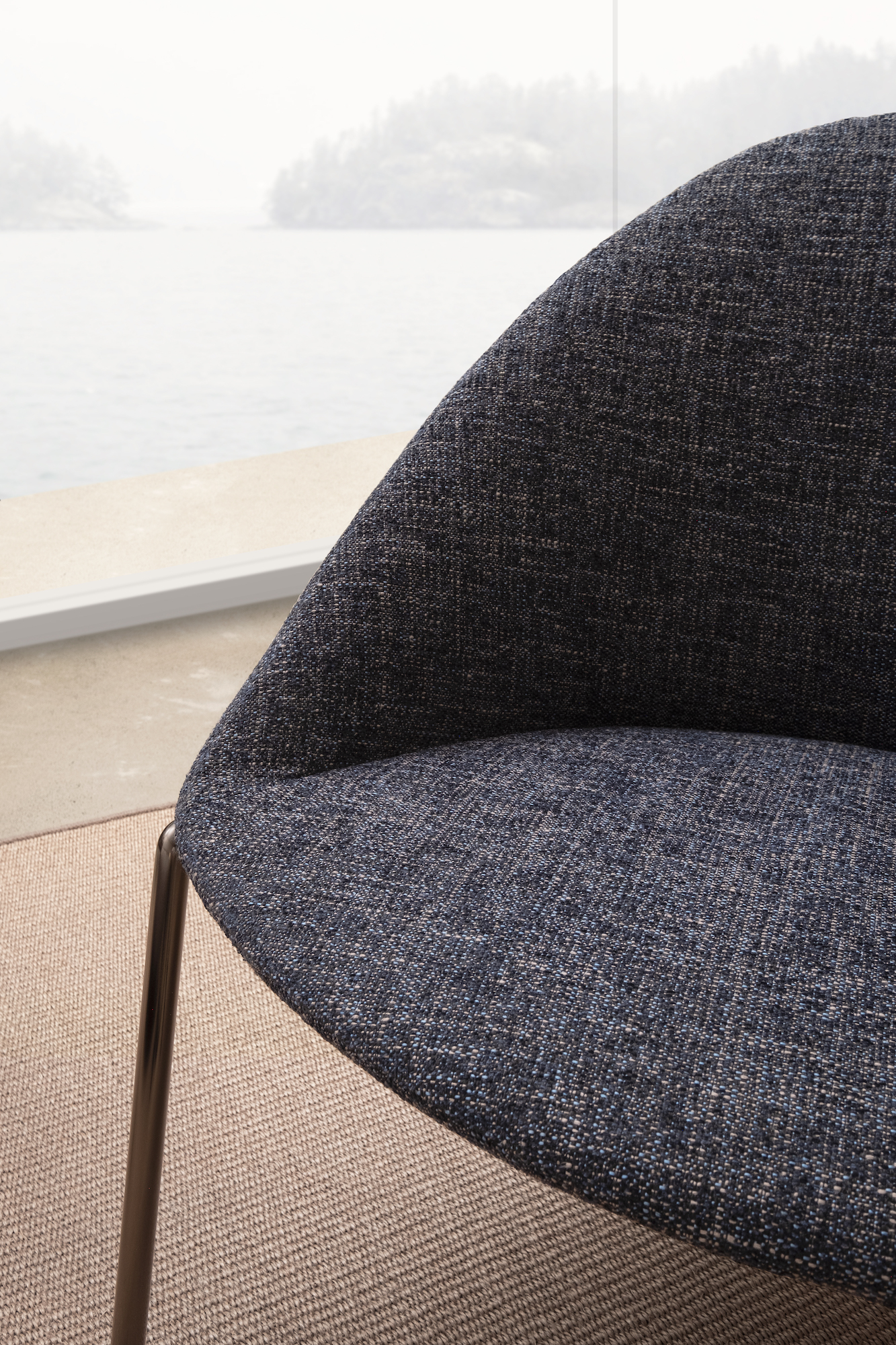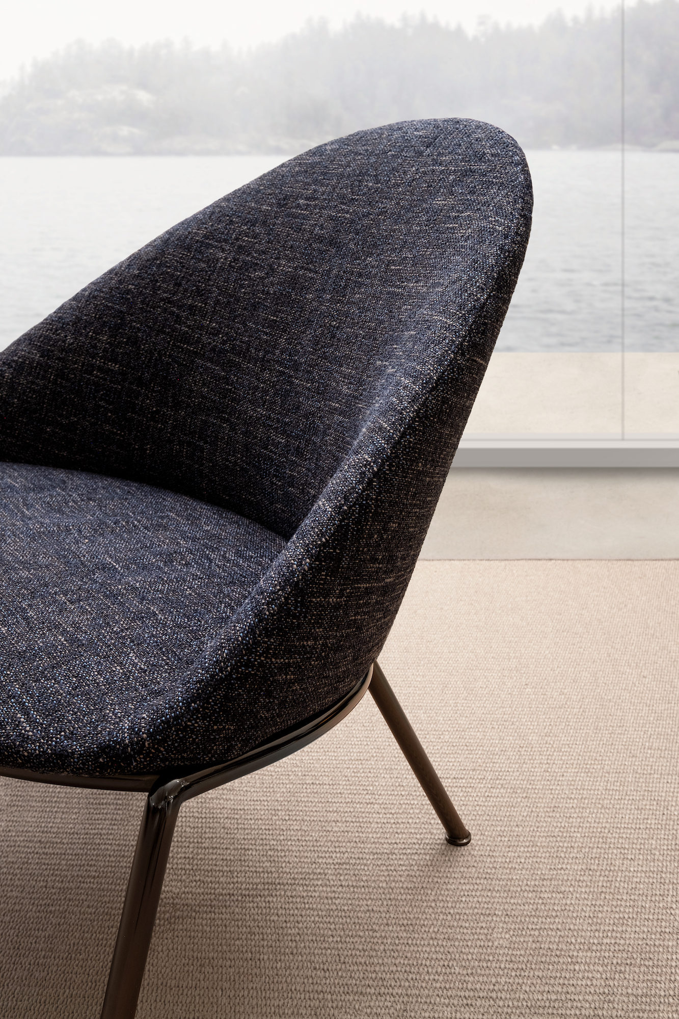 The Circa collection is defined by a distinctive arc silhouette and sumptuous upholstery. A flowing organic form envelops the body and provides comfort while maintaining a small footprint. A responsive webbed seat is concealed within shaped foam, cradling the user and offering complete comfort.