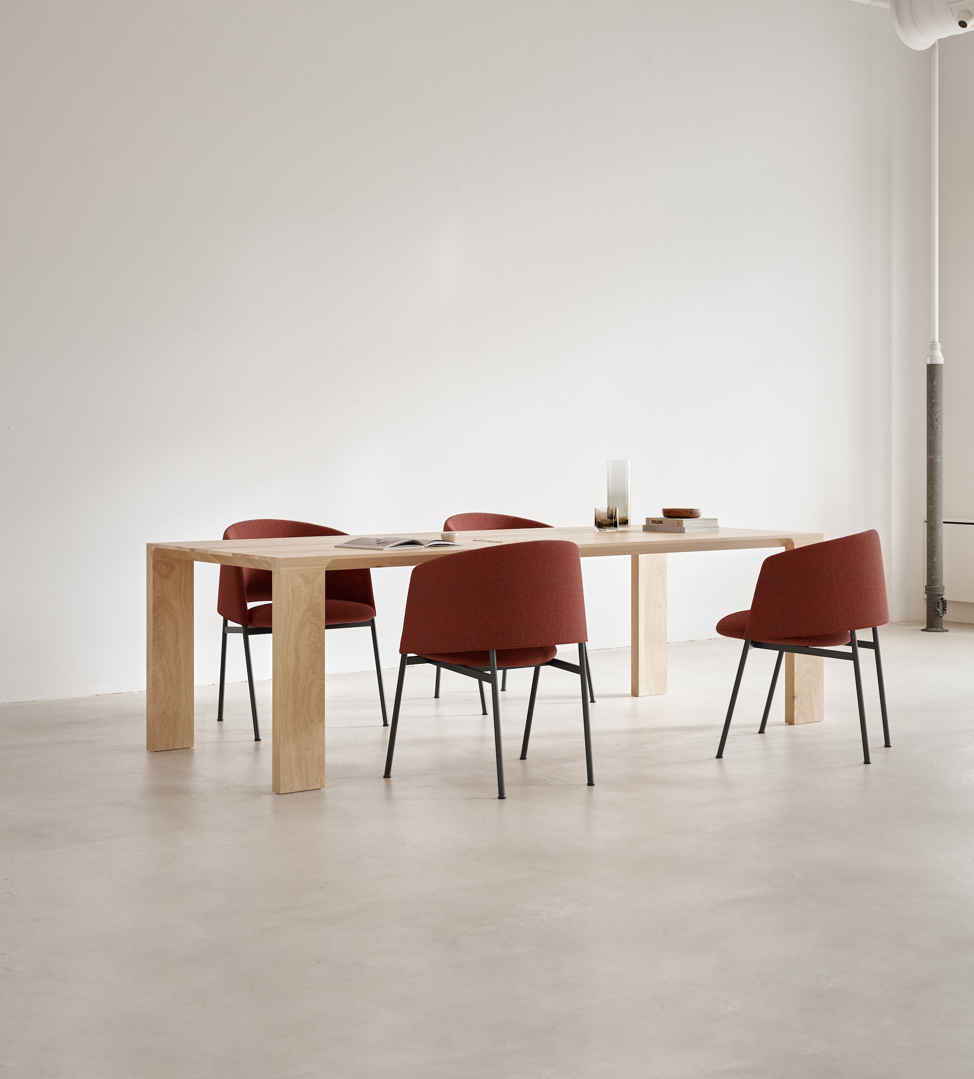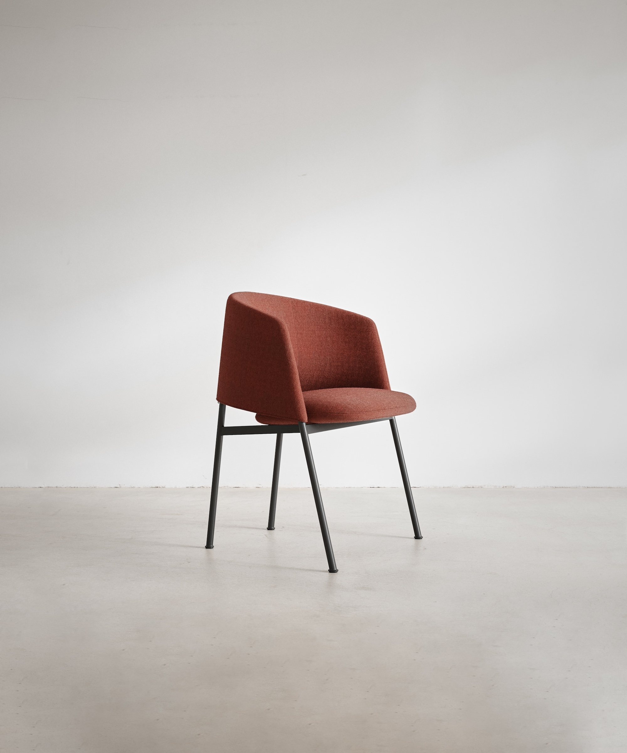Featuring the same silhouette as the Collar Lounge Chair, the Collar Armchair is a versatile piece suitable for all occasions. Its crisp, well-defined backrest wraps you in plush comfort, providing an inviting embrace. The generous seat, nestled within the nook of the backrest, is perched on a supportive linear structure, ensuring both comfort and stability.
