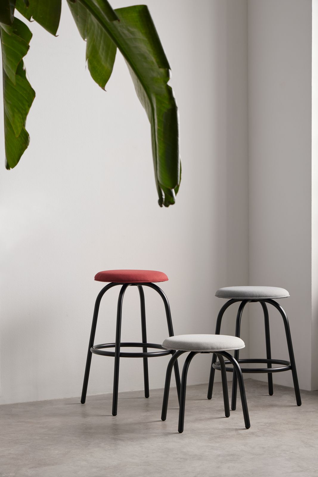 Bowler is available as a chair, stool and lounge chair with a distinctive ring metal base.