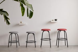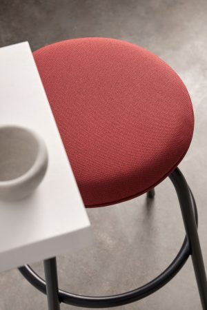 Bowler is available as a chair, stool and lounge chair with a distinctive ring metal base.