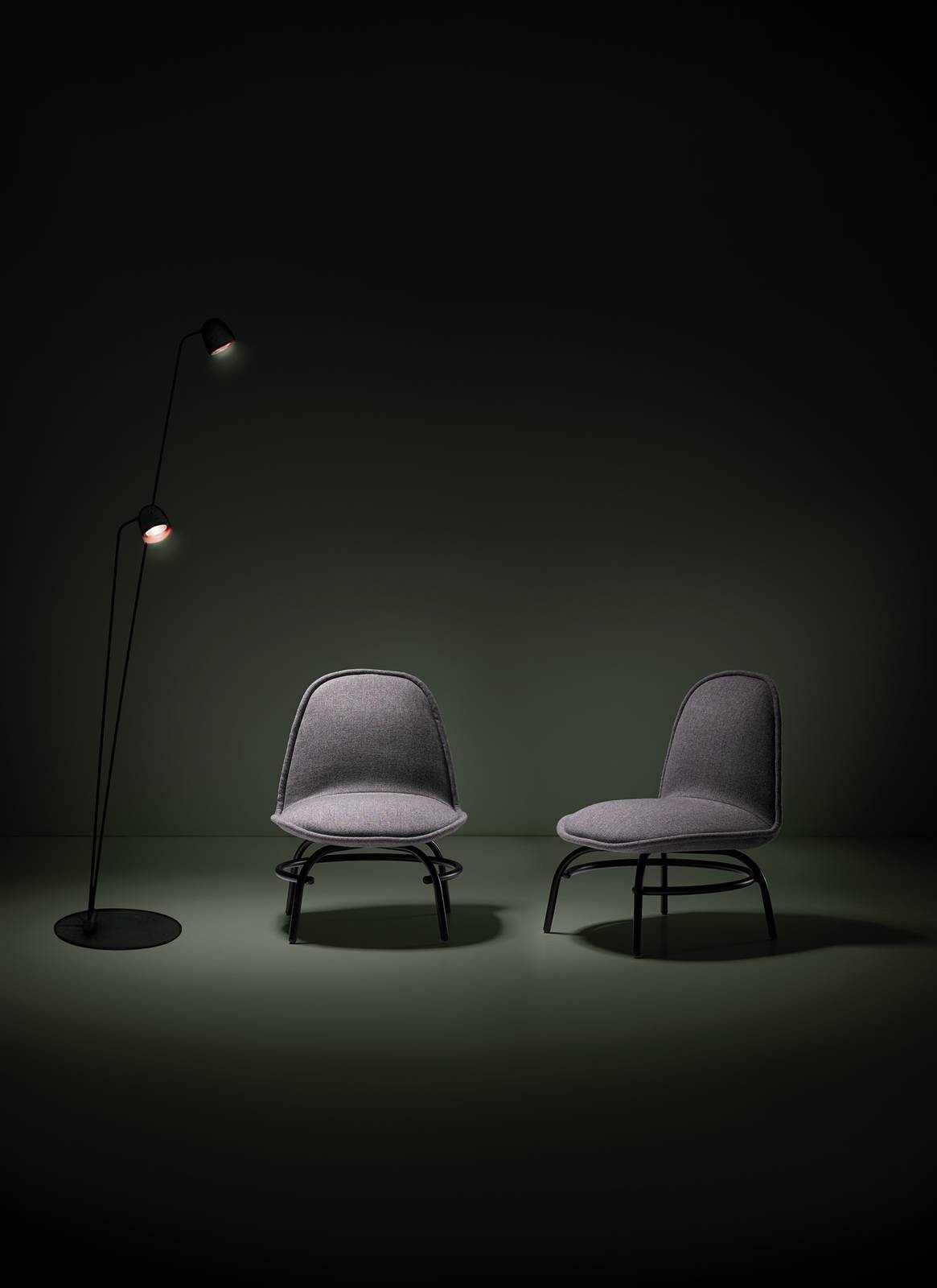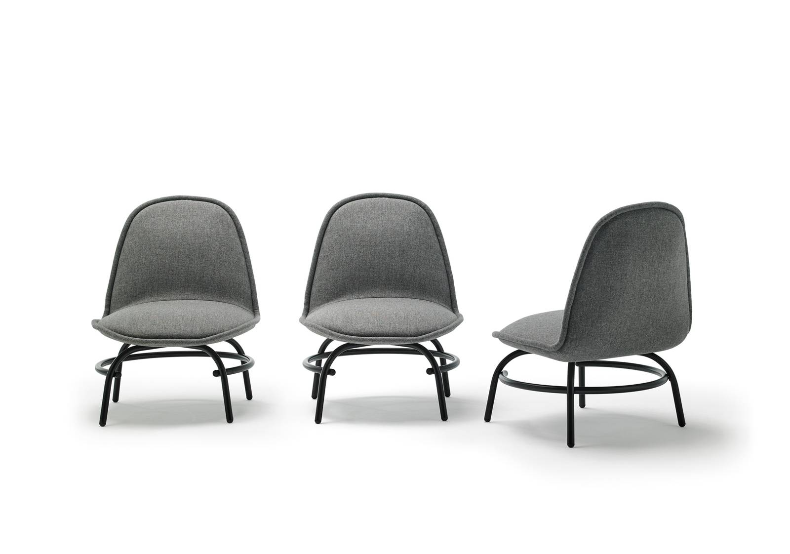 Bowler is available as a chair, stool and lounge with a distinctive ring metal base.