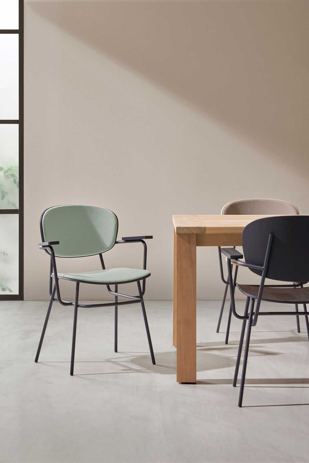 The Fosca Collection is both contemporary and industrial, thanks to its mixed material construction. The collection sets out to be as practical as possible, with the option of padding and upholstery for additional comfort.