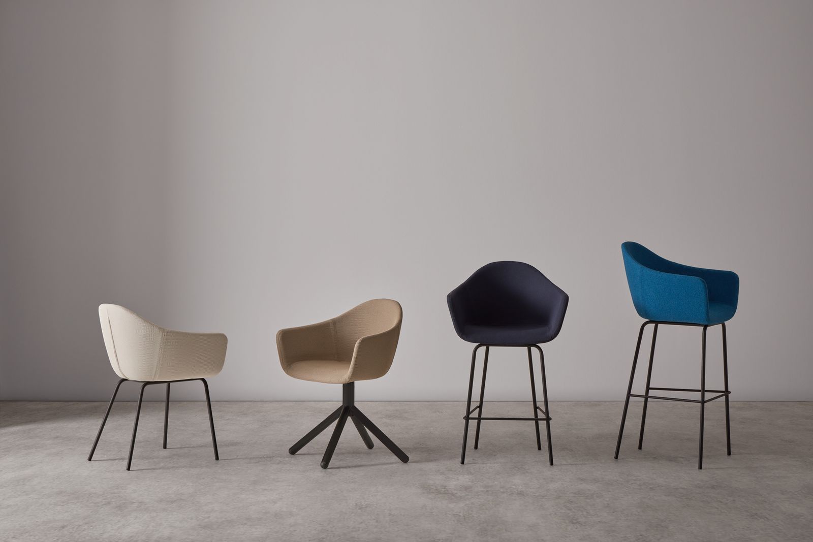 Nomad’s form is made of polyurethane and provides a great deal of comfort. There are multiple leg options fit for a variety of settings.