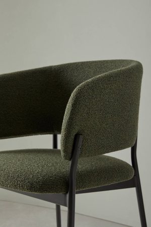 Seat, backrest and wrapped arms: Moulded multiply padded in FR polyurethane foam with fibre overlay, upholstered in house fabric