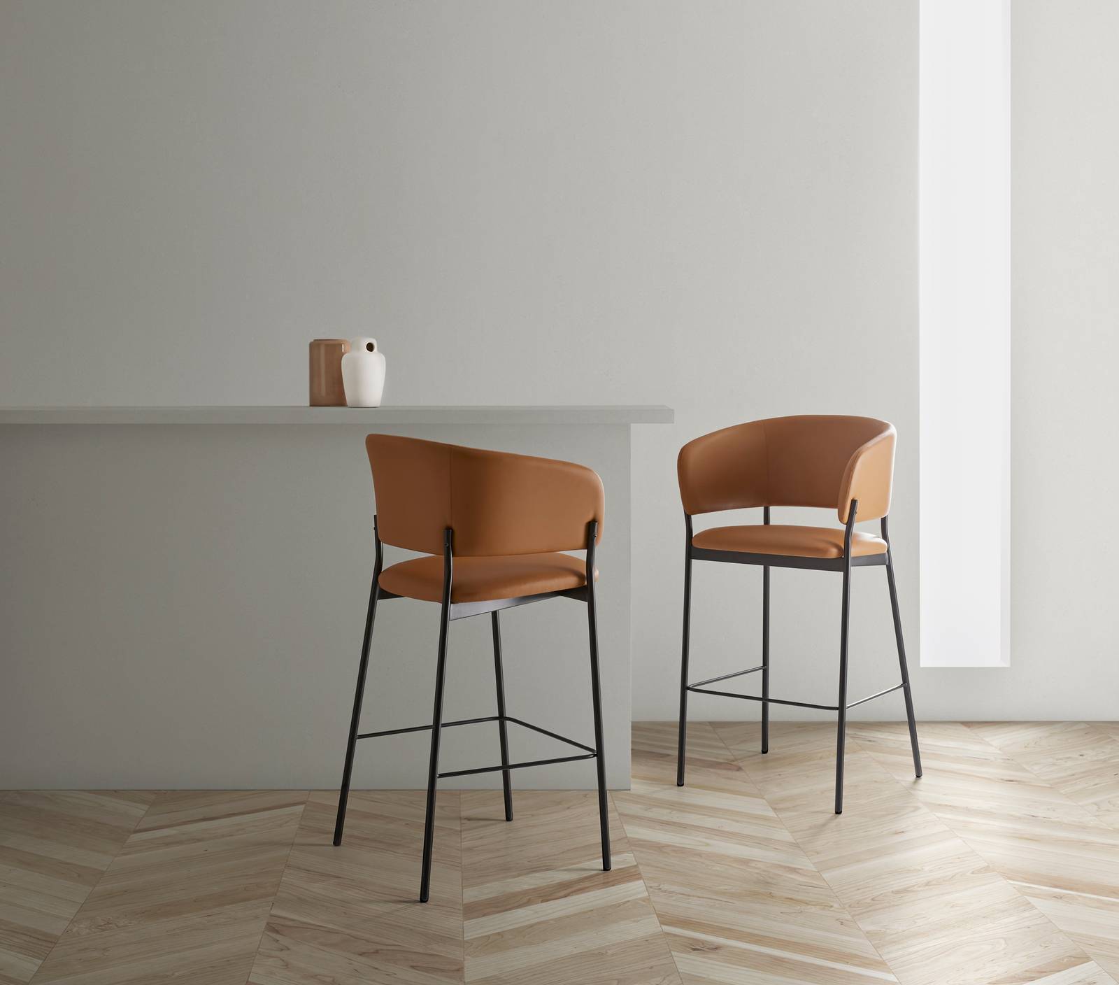 The extensive collection by Francesc Rifé offers a range of typologies including a chair, armchair, stools, lounges, with a complimentary table and ottoman.