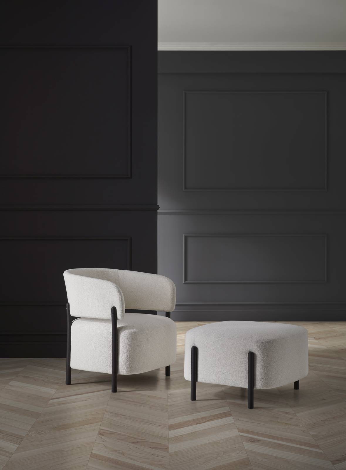 The extensive collection by Francesc Rifé offers a range of typologies including a chair, armchair, stool, lounges, with a complimentary table and ottoman.