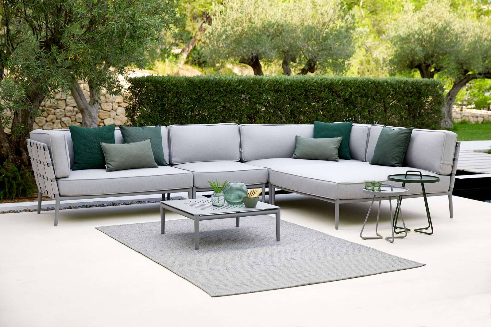 Conic Modular Lounge is ideal for creating the perfect outdoor area on your terrace. The lounge comments have high comfort, flexibility and a timeless design. Conic can be used both as a single chaise lounge or joined to form a larger system. The lounge is easy to move around and requires minimal maintenance and cleaning. The cushions upholstered in the weather-resistant Cane-line SoftTouch® fabric with QuickDryFoam®. The QuickDryFoam® allows the cushions to dry quickly after a downpour. Enjoy your summer evenings on the terrace with Conic collection.