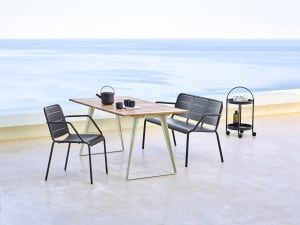 The Copenhagen collection includes a chair, armchair, rocking chair, lounge and table. All and suitable for use both indoors or outdoors.