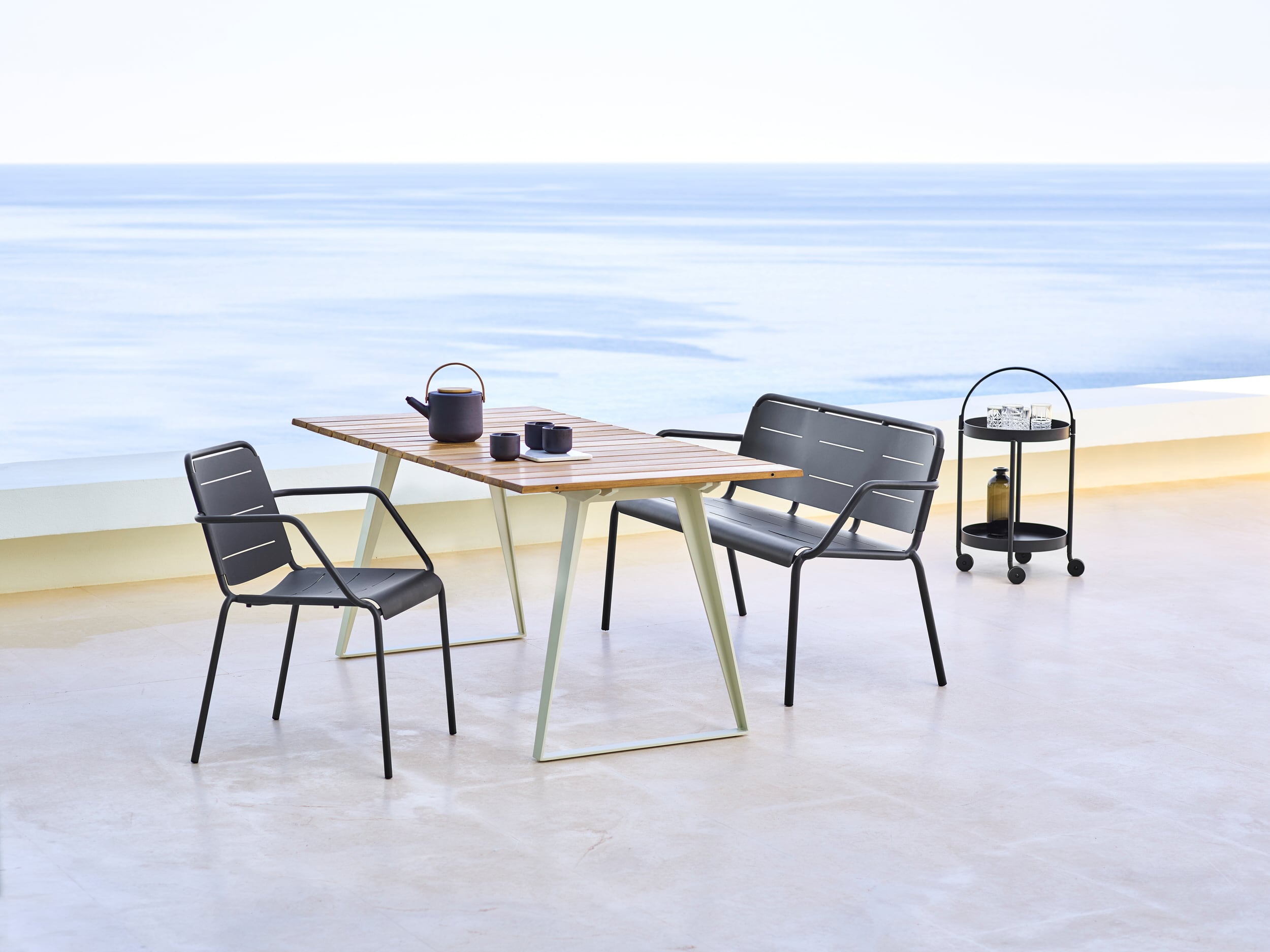The Copenhagen collection is uncomplicated, both in design and function. Understated, fresh and functional the Copenhagen chair is an elegant dining solution, ideal for almost any setting. Light and easy to move around, the Copenhagen collection offers a breath of fresh air in the often neutral garden furniture universe, both with colours and its contemporary, light look.