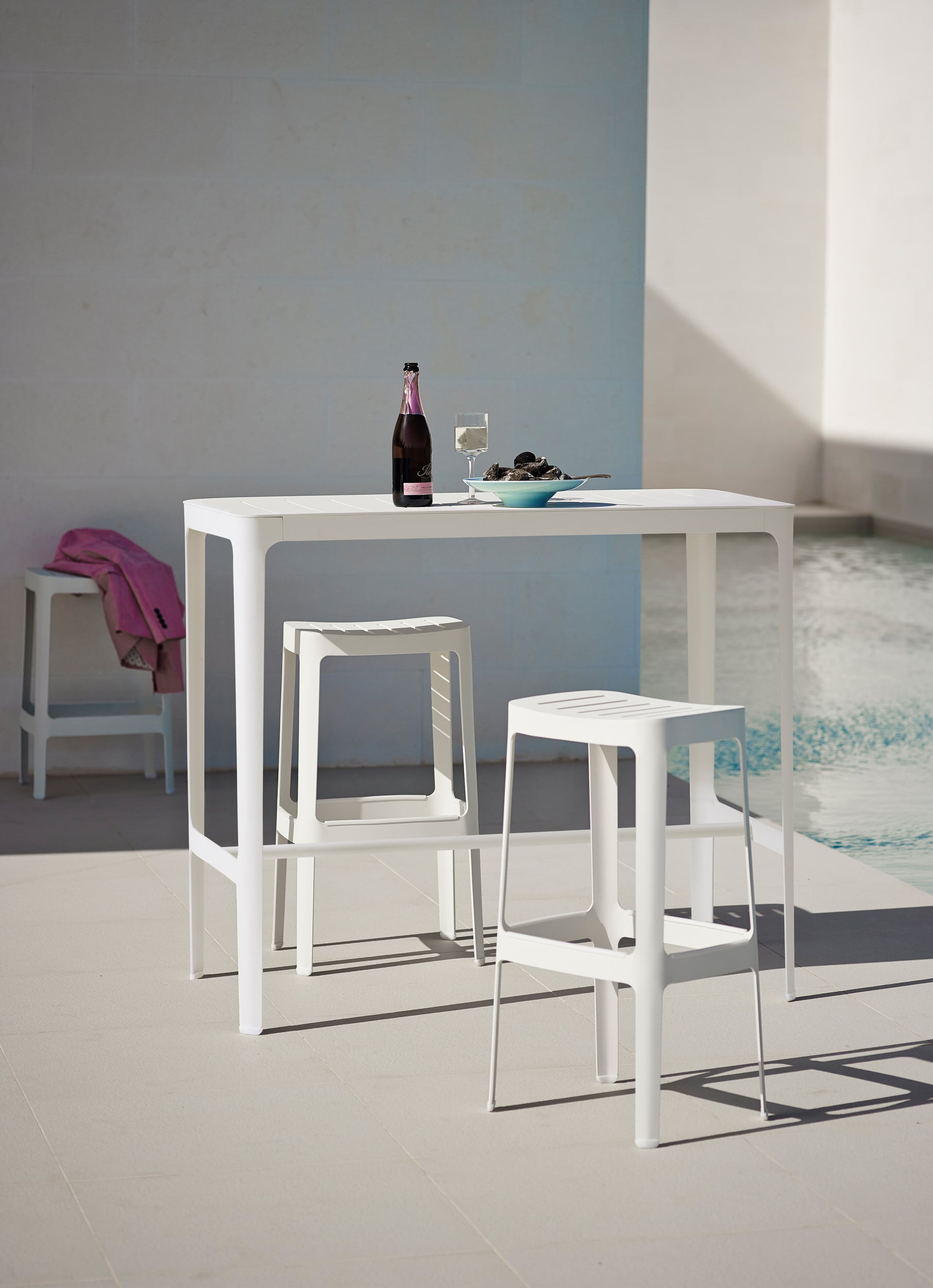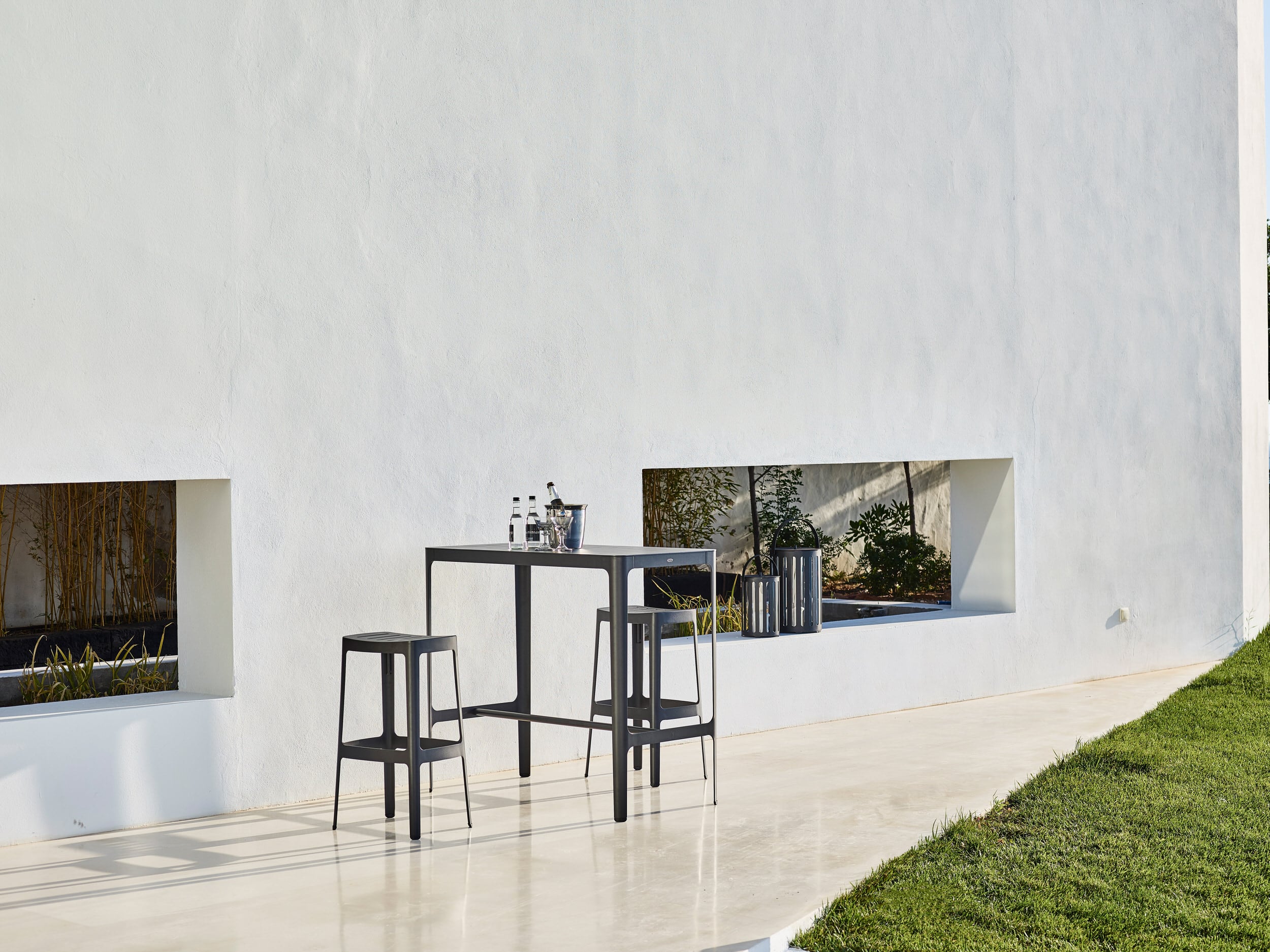 Requiring a minimum of cleaning and maintenance, Cut is available as a Bar height table with matching stools.