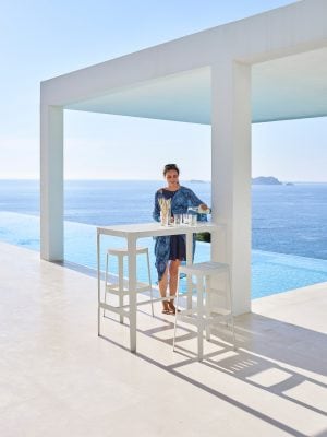 Cut is a contemporary table and seating collection, constructed from laser cut aluminium, bent and welded to achieve a refined, sleek profile. This minimalist design is perfect for casual alfresco dining and would not look out of place indoors for an informal get together.