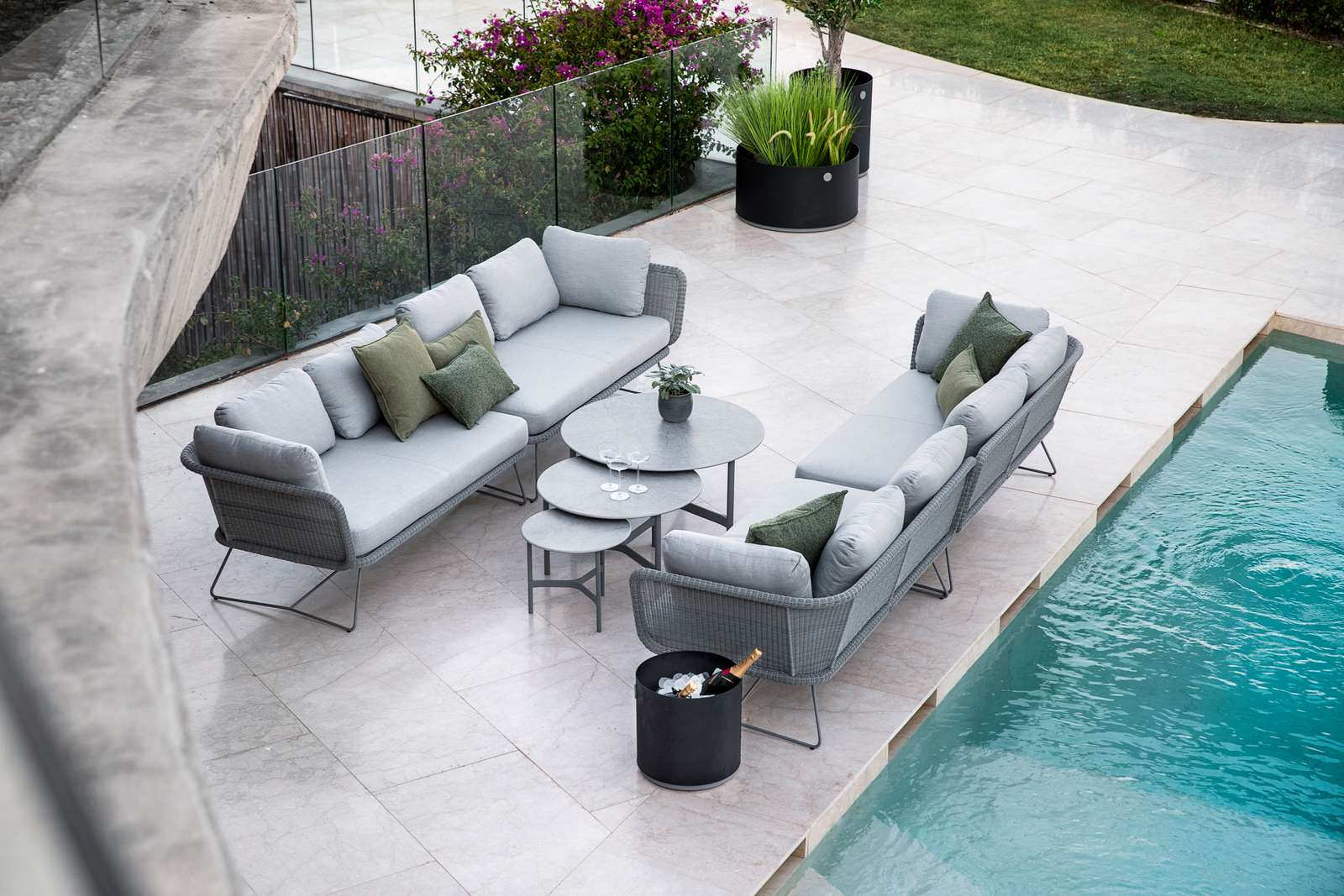The Horizon Modular Lounge, is designed by the Cane-line design team. Horizon is a lounge concept based on a Scandinavian design, focusing on high comfort and flexibility. Horizon is manufactured in the weather-resistant Cane-line Weave® and with QuickDryFoam cushions. Cane-line QuickDry & AirFlow system is a special technique for increased comfort. After a rain-shower, the cushions are dry again after approx. 1 hour, and ventilates in areas with high humidity. The narrow steel frame contributes with a slightly floating expression, which together with the woven seat forms an elegant frame. Seat and cushions are made from the soft and comfortable Cane-line Natté fabric, which makes Horizon the perfect place for relaxation and reflection.