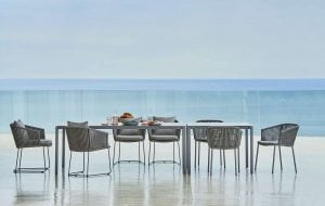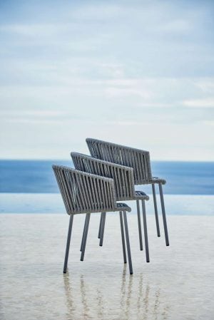 Featuring an inviting curved backrest, the frame and legs are bound with thick Cane-line Soft Rope, a unique rope finish which features an elasticated polypropylene coating that is quick drying and UV resistant, with a soft fibre like feel.