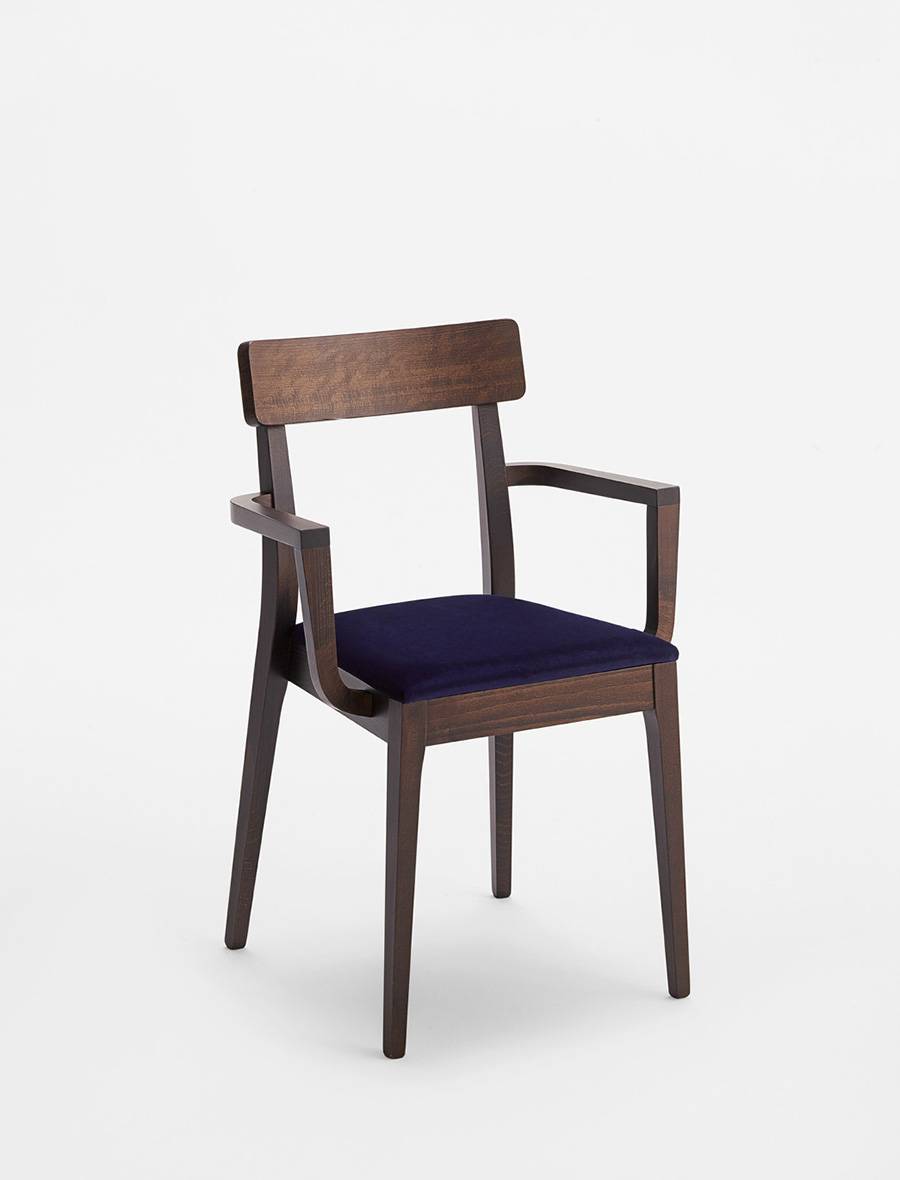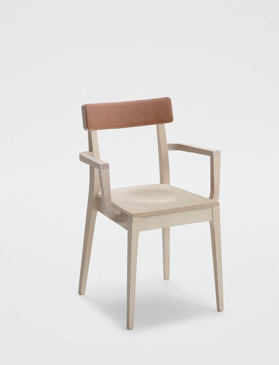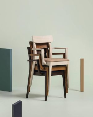 With its simple, clean and linear structure, Inga conveys lightness and serenity. Its slim but robust figure is enhanced by an elegant profile in stark contrast to the rigidity of the structure. The armchair, stackable like the chair, is distinguished by the curved shape of the armrests, which have their own particular character.