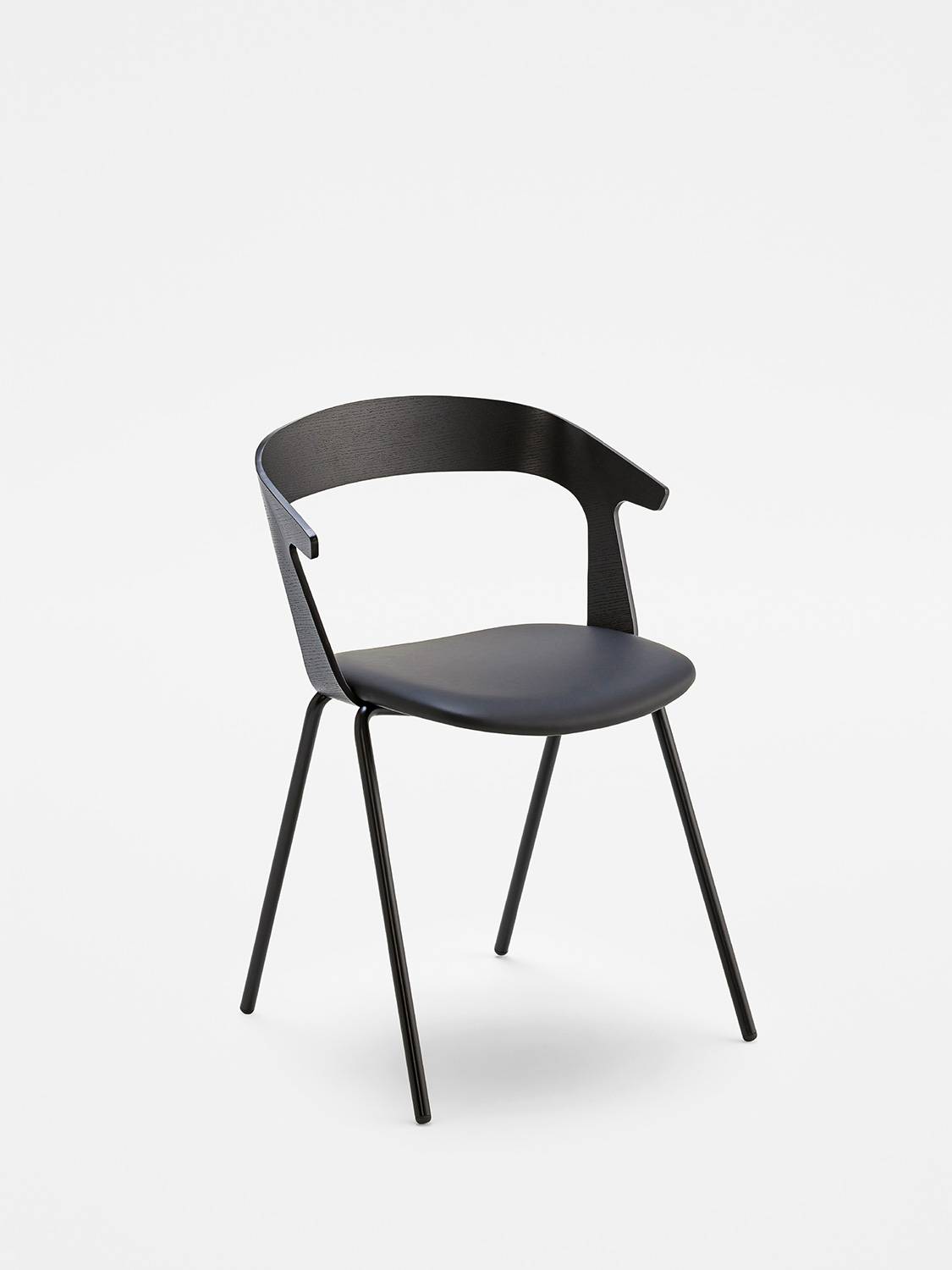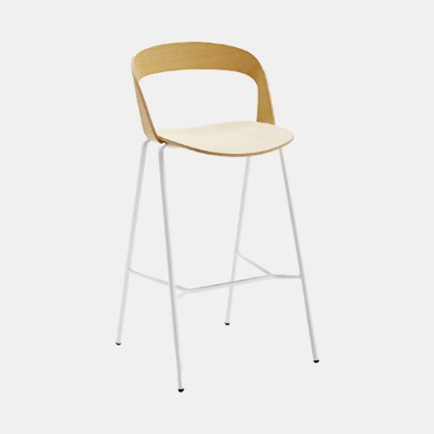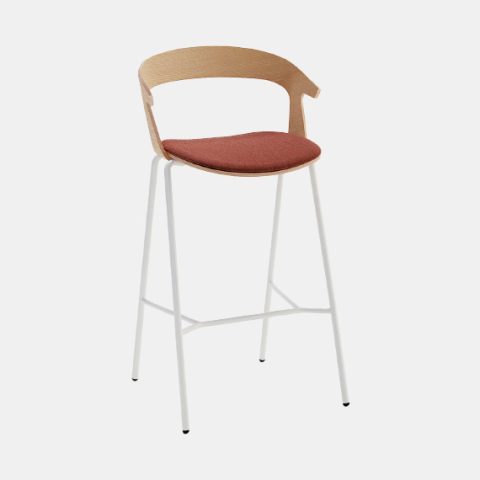 Available with metal frame and wooden seat and back. The seat is fully customisable in colours and upholstery, in leather or fabric. Stackable chair and armchair fit naturally into any context. The stool finishes a collection designed to furnish public and private spaces with a recognisable and functional aesthetic.