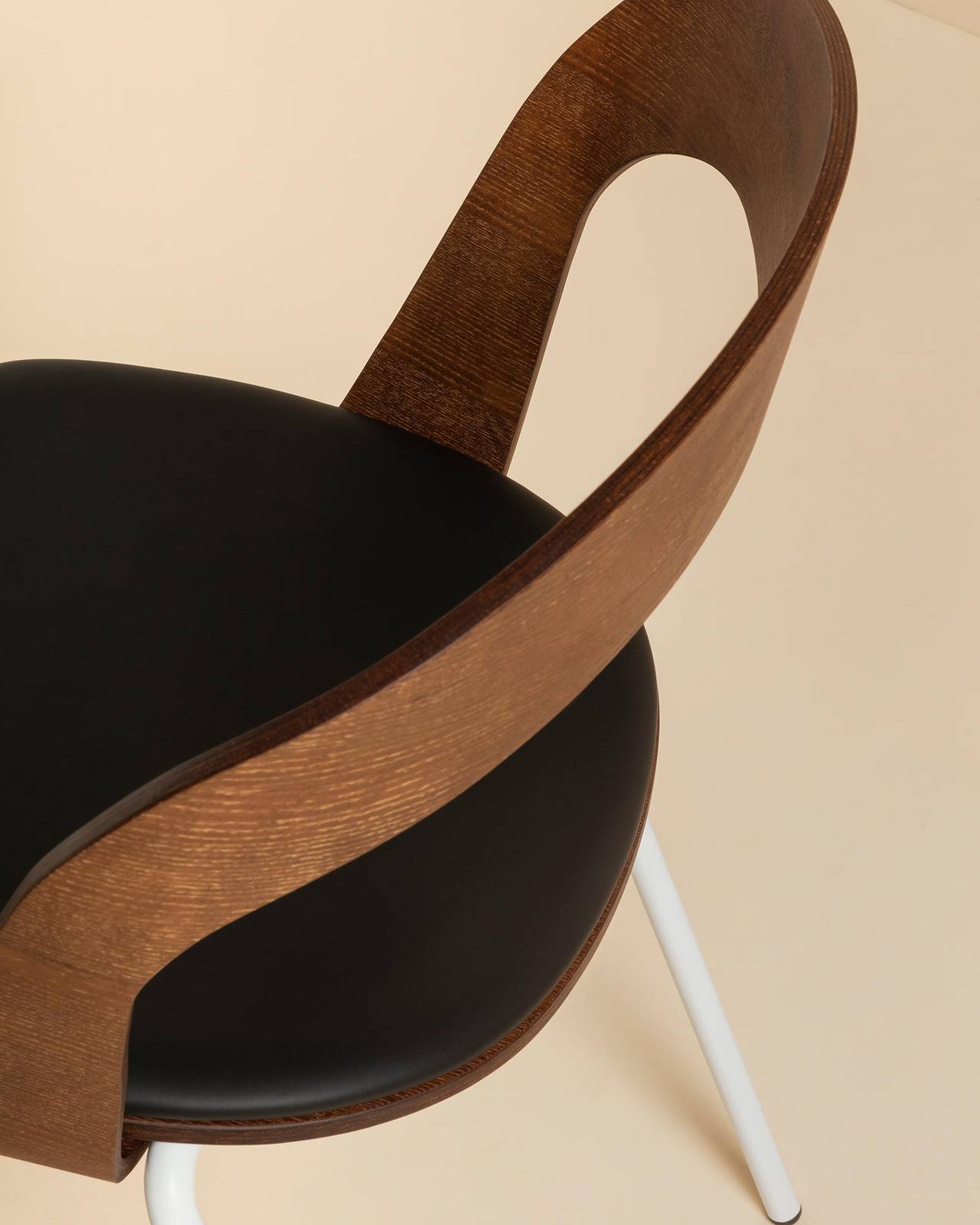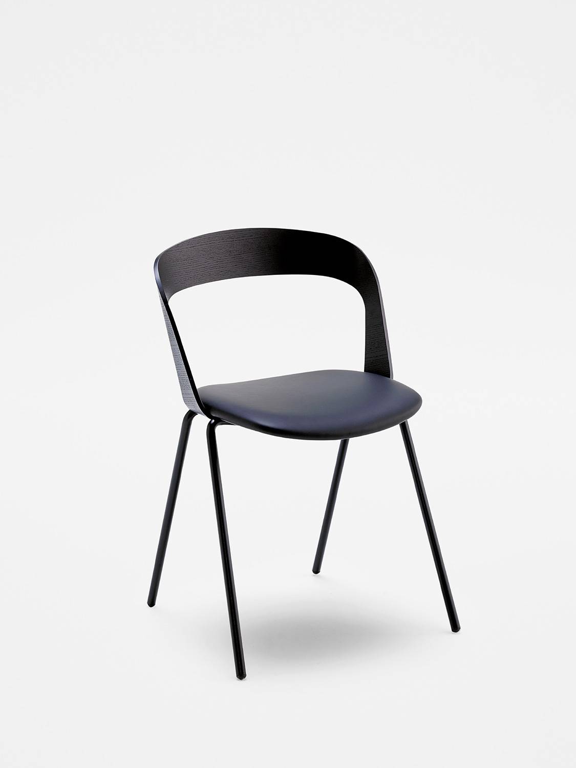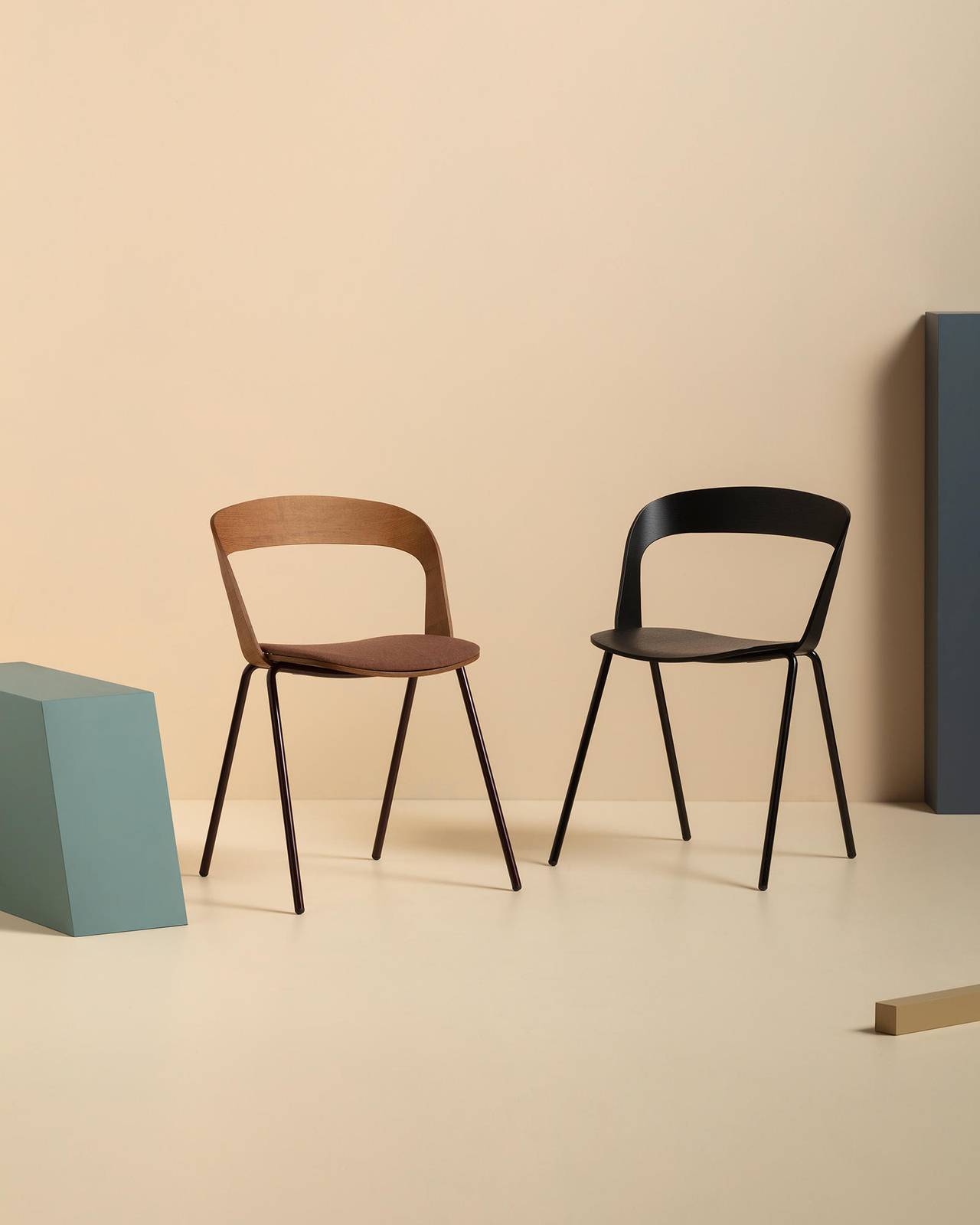 Available with metal frame and wooden seat and back. The seat is fully customisable in colours and upholstery, in leather or fabric. Stackable chair and armchair fit naturally into any context. The stool finishes a collection designed to furnish public and private spaces with a recognisable and functional aesthetic.