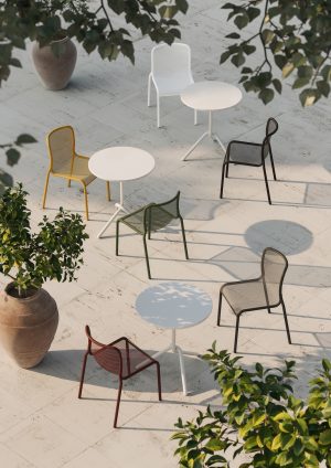 The mesh design increases portability and adds a visual lightness, allowing the chair’s structure to be more visible while enhancing comfort through improved airflow—particularly valuable in warm outdoor environments. The mesh also brings flexibility, offering a comfortable and resilient seating option suited to a range of spaces.