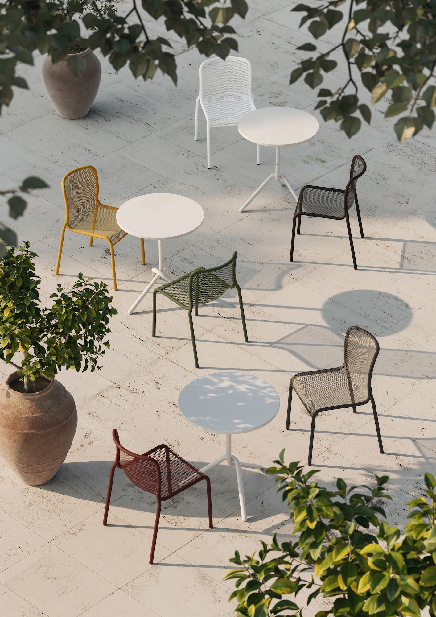 Momo Net introduces a lighter, more transparent style to the original Momo chair, making it ideal for outdoor use. Retaining the sturdy structure of the original, this model now features a stretched mesh seat and backrest, boosting both comfort and functionality.