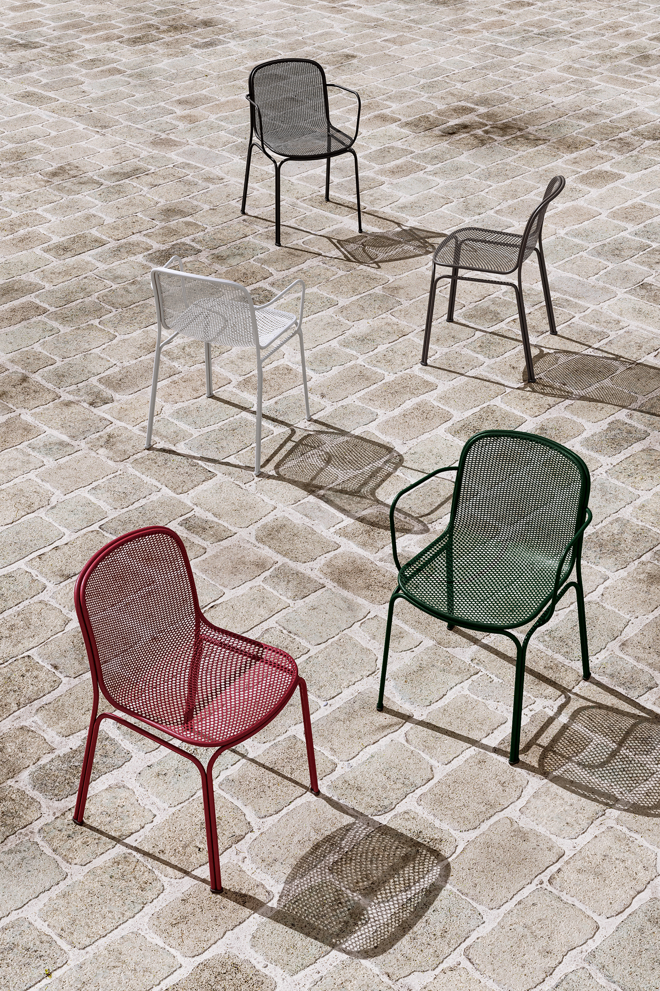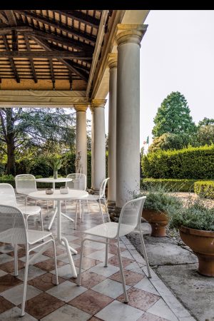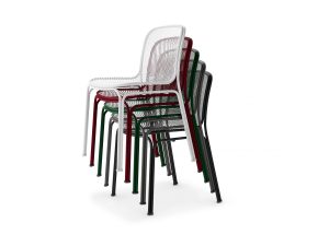 The all-metal construction of Villa blends classic lines with a contemporary aesthetic. Inspired by the natural cane seating found in Parisian sidewalk cafes, it maintains a light appearance while being extremely hardwearing.