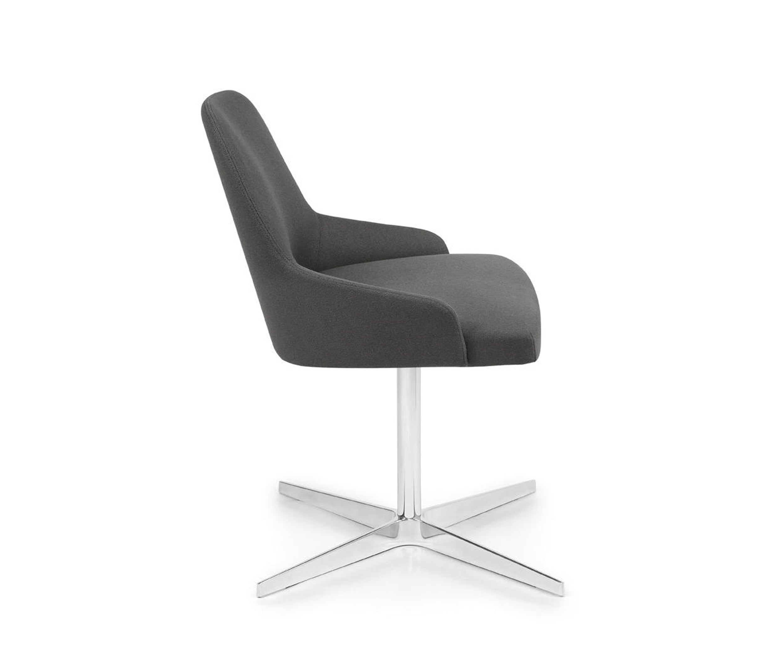The variable thickness of the upholstered seat and backrest has been expressly designed to give it unmatched levels of comfort and durability. Available in three backrest heights, in a variety of materials and base finishes Axel is designed to follow and support the curvature of the body.