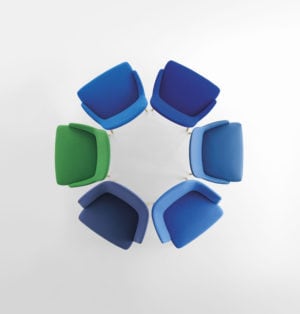 The variable thickness of the upholstered seat and backrest has been expressly designed to give it unmatched levels of comfort and durability. Available in three backrest heights, in a variety of materials and base finishes Axel is designed to follow and support the curvature of the body.