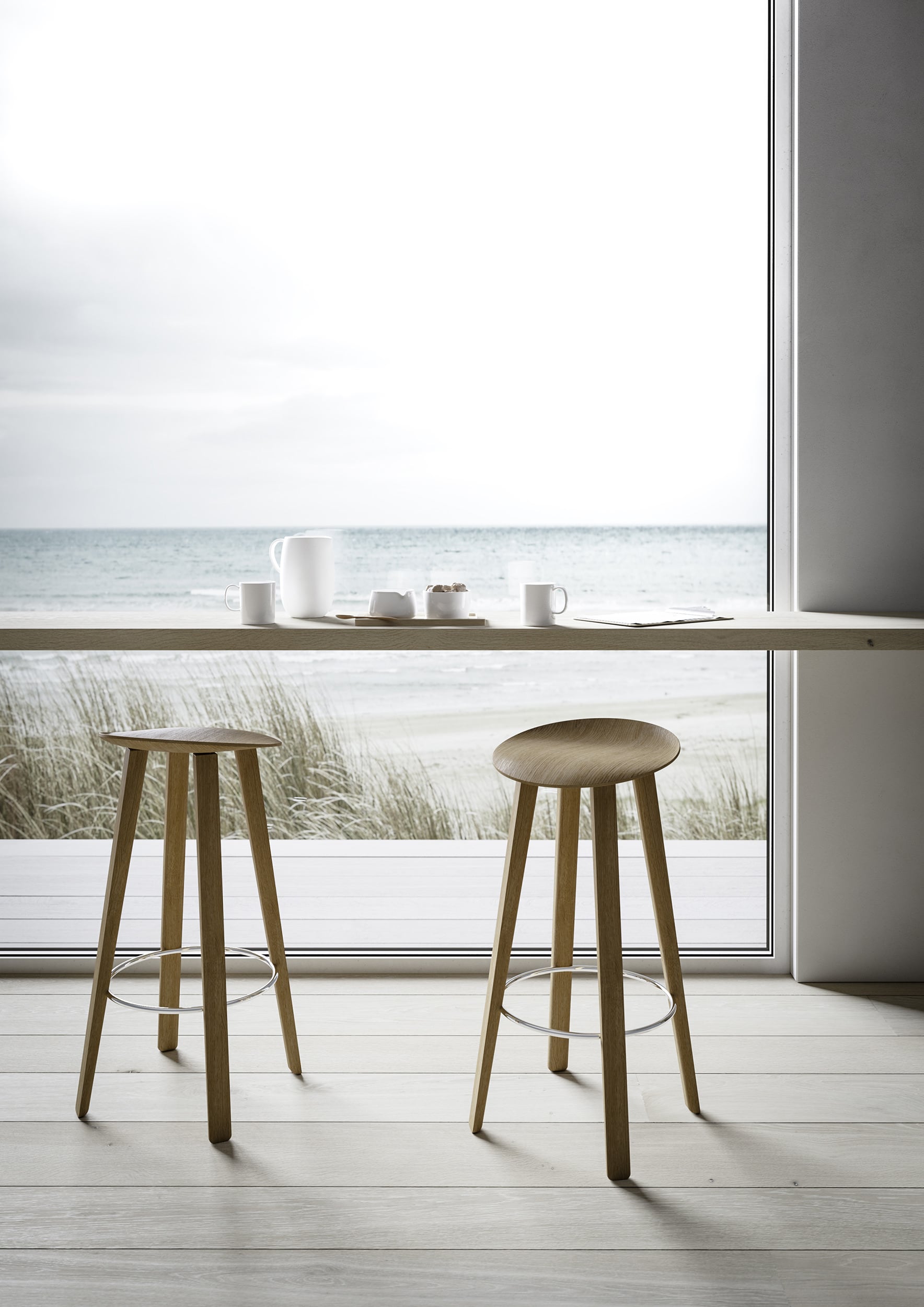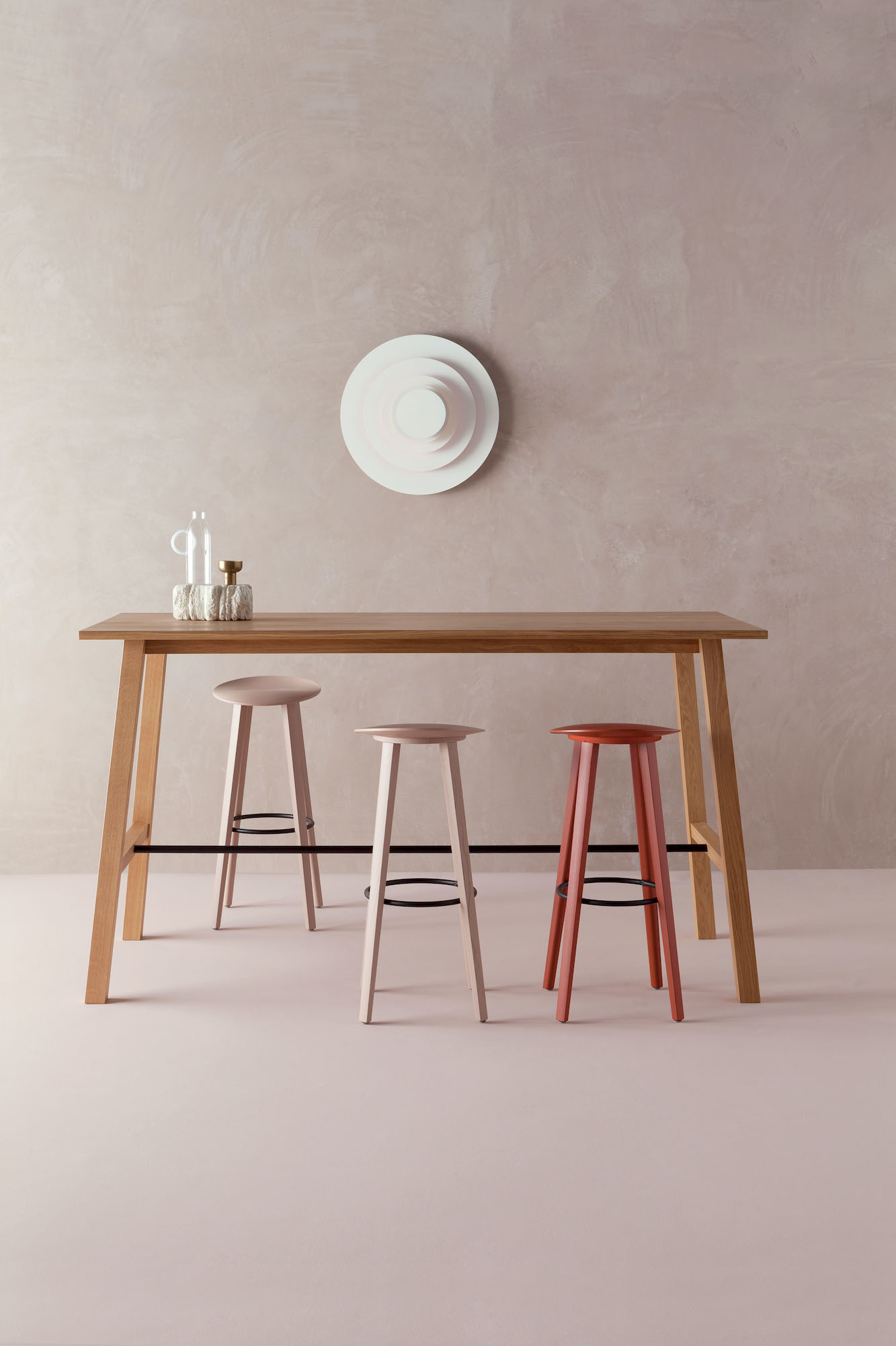 Simple but elaborate, Beret embodies ñless is moreî. The pure and simplistic shape of the circle, skillfully moulded with 3D wood technology creates a stool of impressive stability and comfort. The seat is made of micro-perforated plywood; a state of the art material, that allows a variety of shapes at a reduced thickness for an increased level of elegance and style. The curvature of the seat is engineered to support the contours of the body in comfort on a confined footprint.