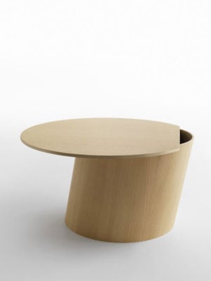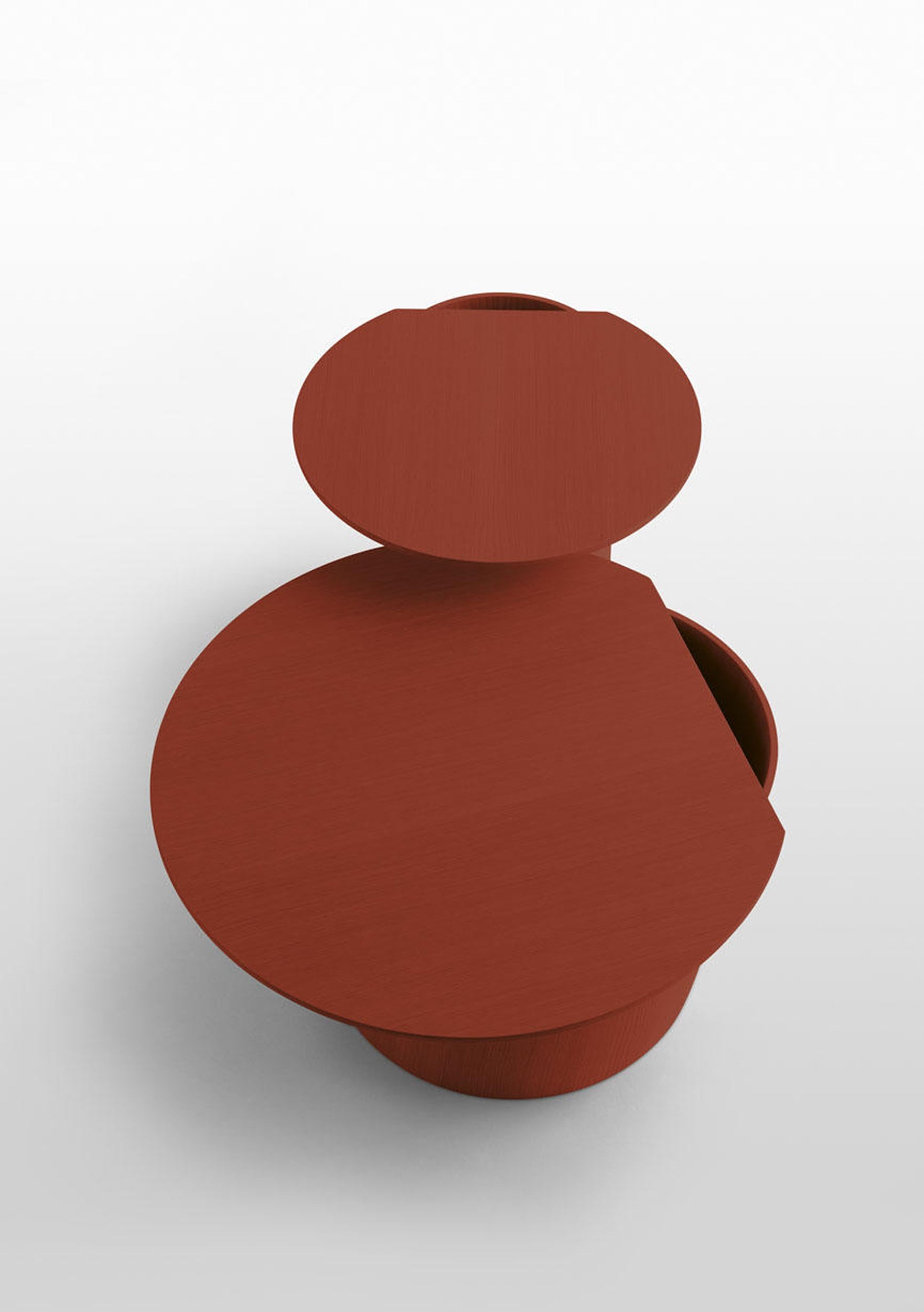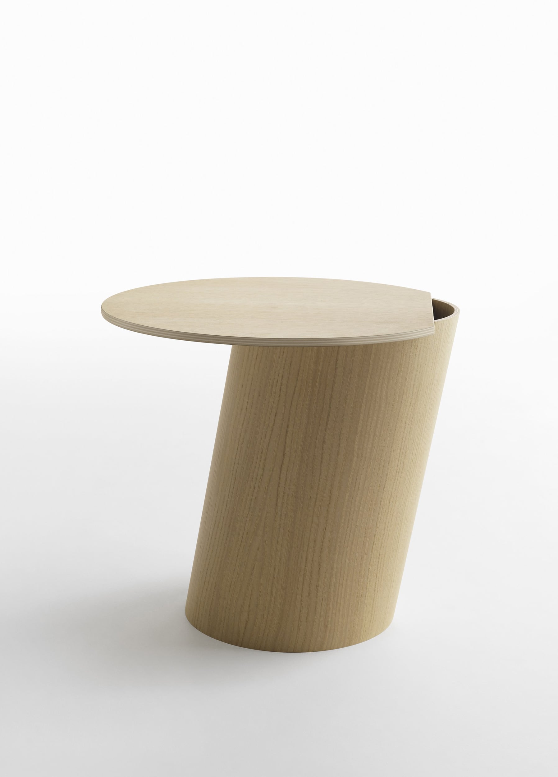 Bias is the result of a union of two shapes; an inclined cylinder and a thin, flat timber circle. Combining simple, clean lines with the angled base creates a dynamic effect. Skilled handcrafting of the Oak moulded plywood, without any visible joints, translates into a unique design aesthetic, which is also attributed to the open grain finishing that represents the simplicity of wood.